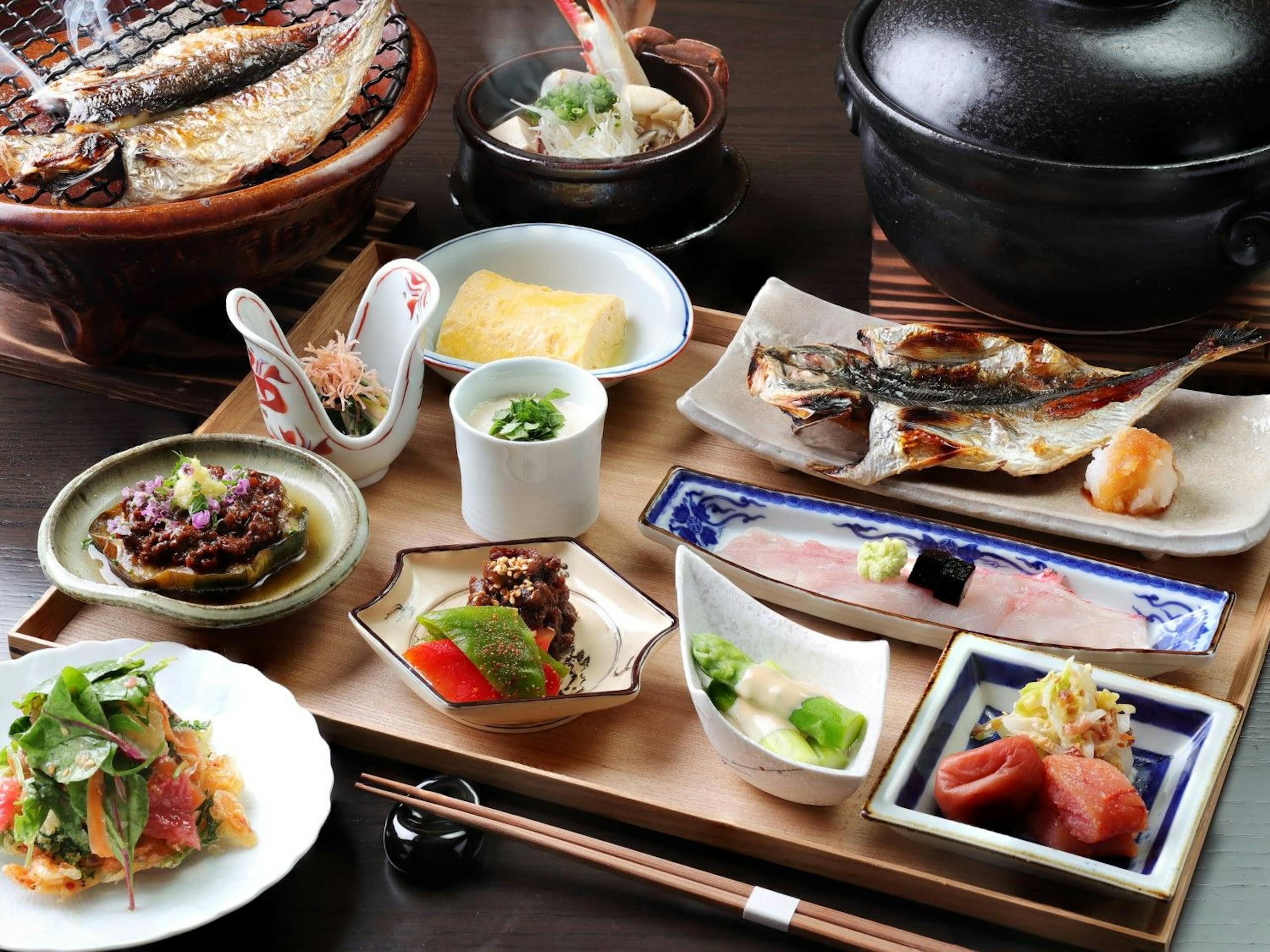 滞在時の夕食は高級旅館にふさわしい日本料理懐石や鉄板焼きとなります。