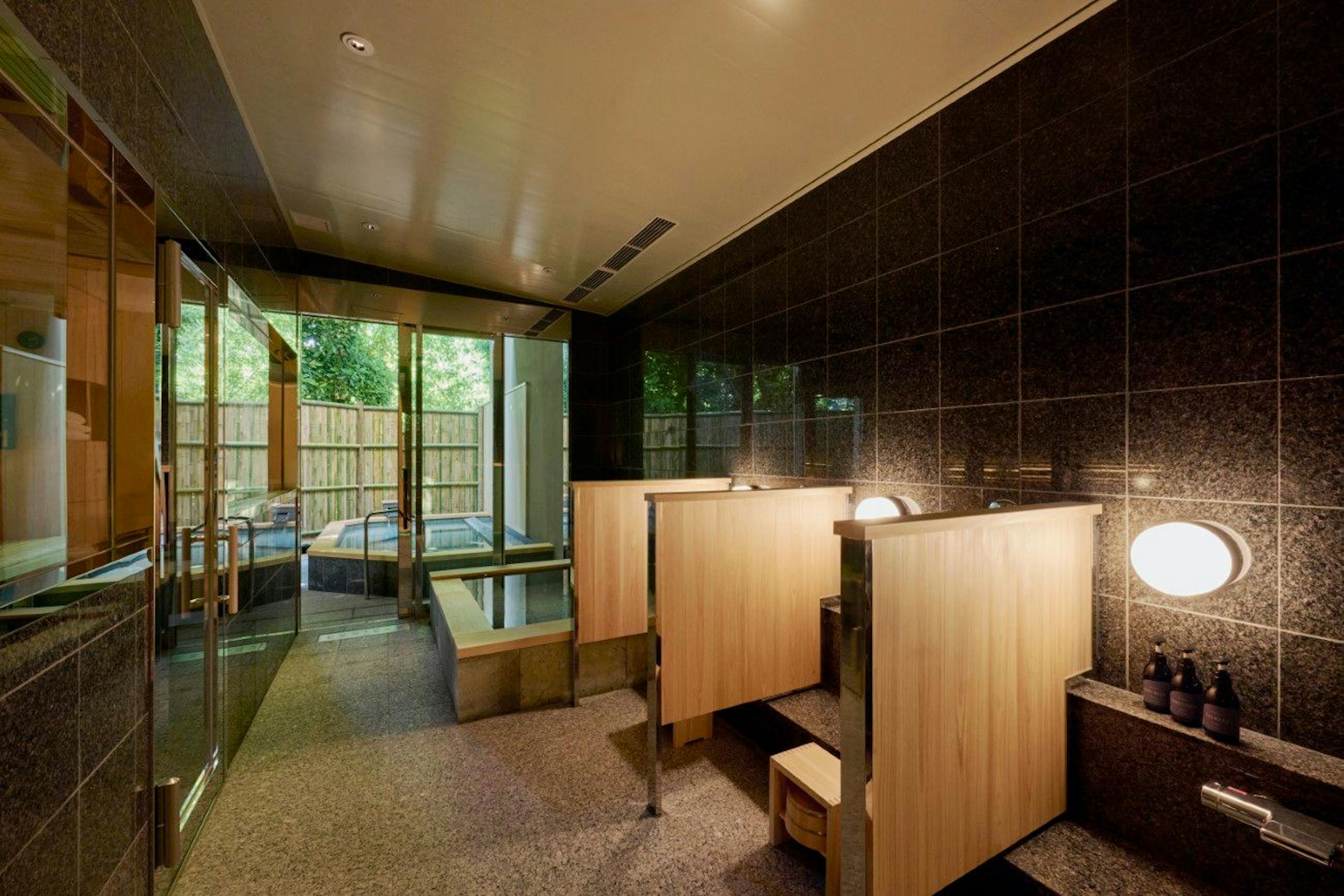バスルームはヒノキ枠の石風呂の露天風呂とミストサウナとなります