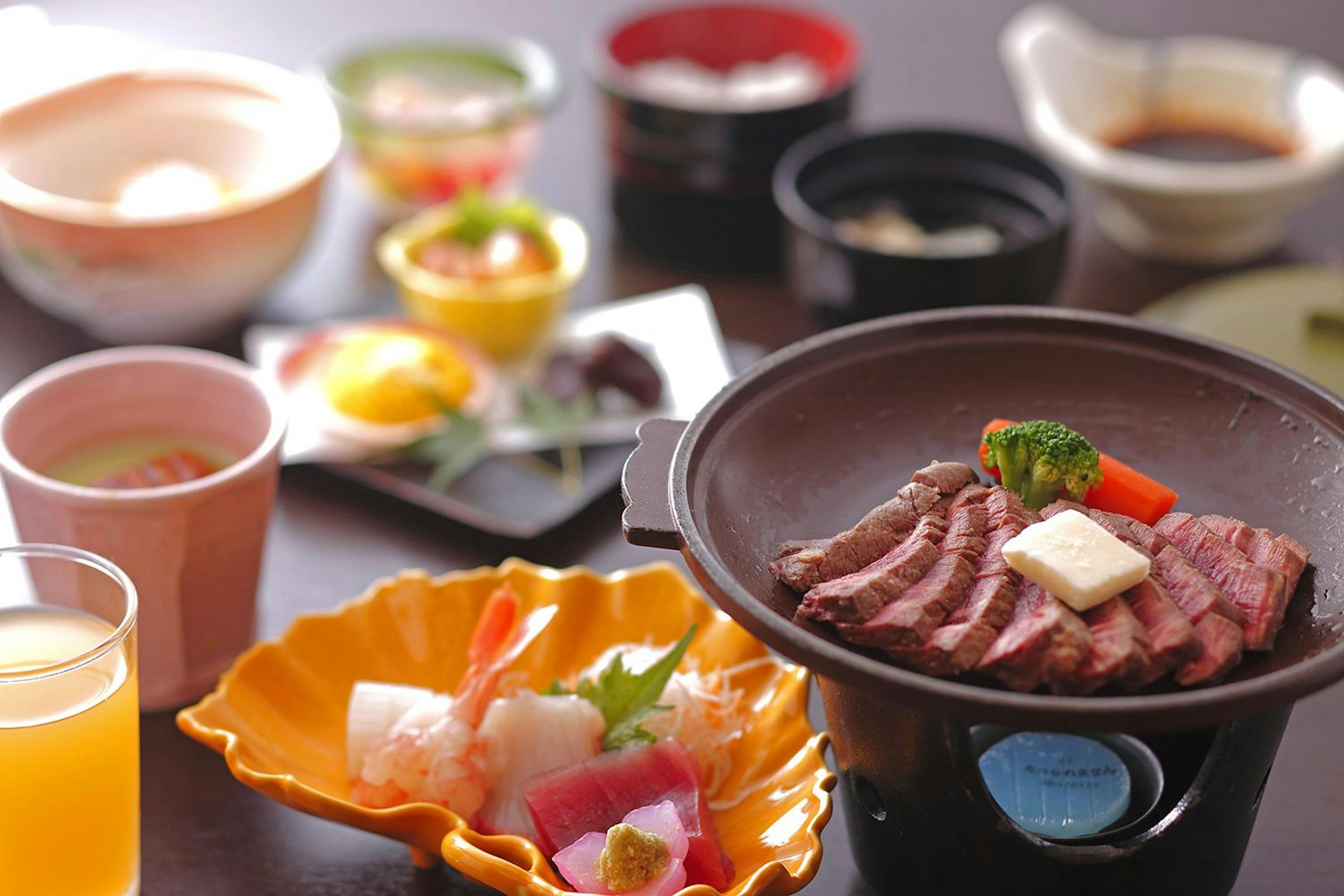 宿泊時の夕食の料理はプランによって選ぶことができます。