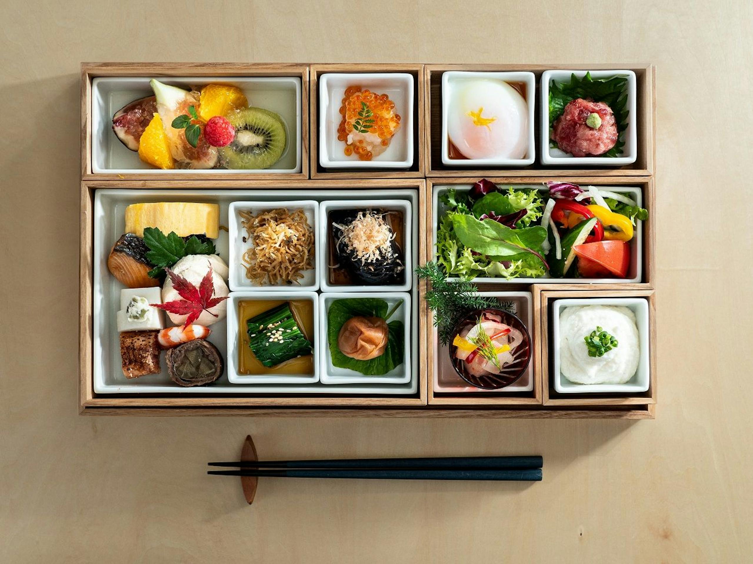 和食は銀鱈西京焼き、出来立ての豆腐、サラダ、マグロたたきなどを頂けます。