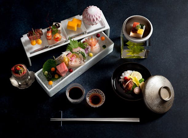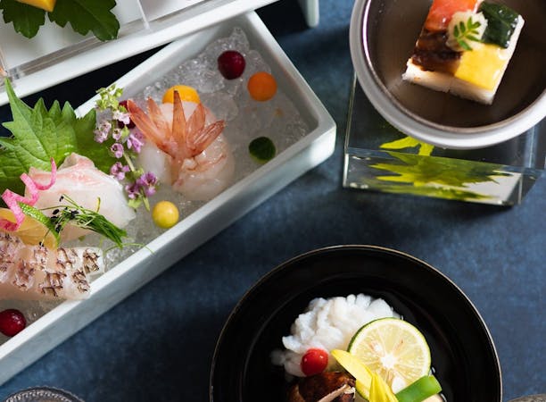 モダン懐石のスタンダードコースは食前酒、先付、八寸、煮物椀、造里、焼肴、肉料理、炊き合わせ、食事、水菓子といった内容となっています。