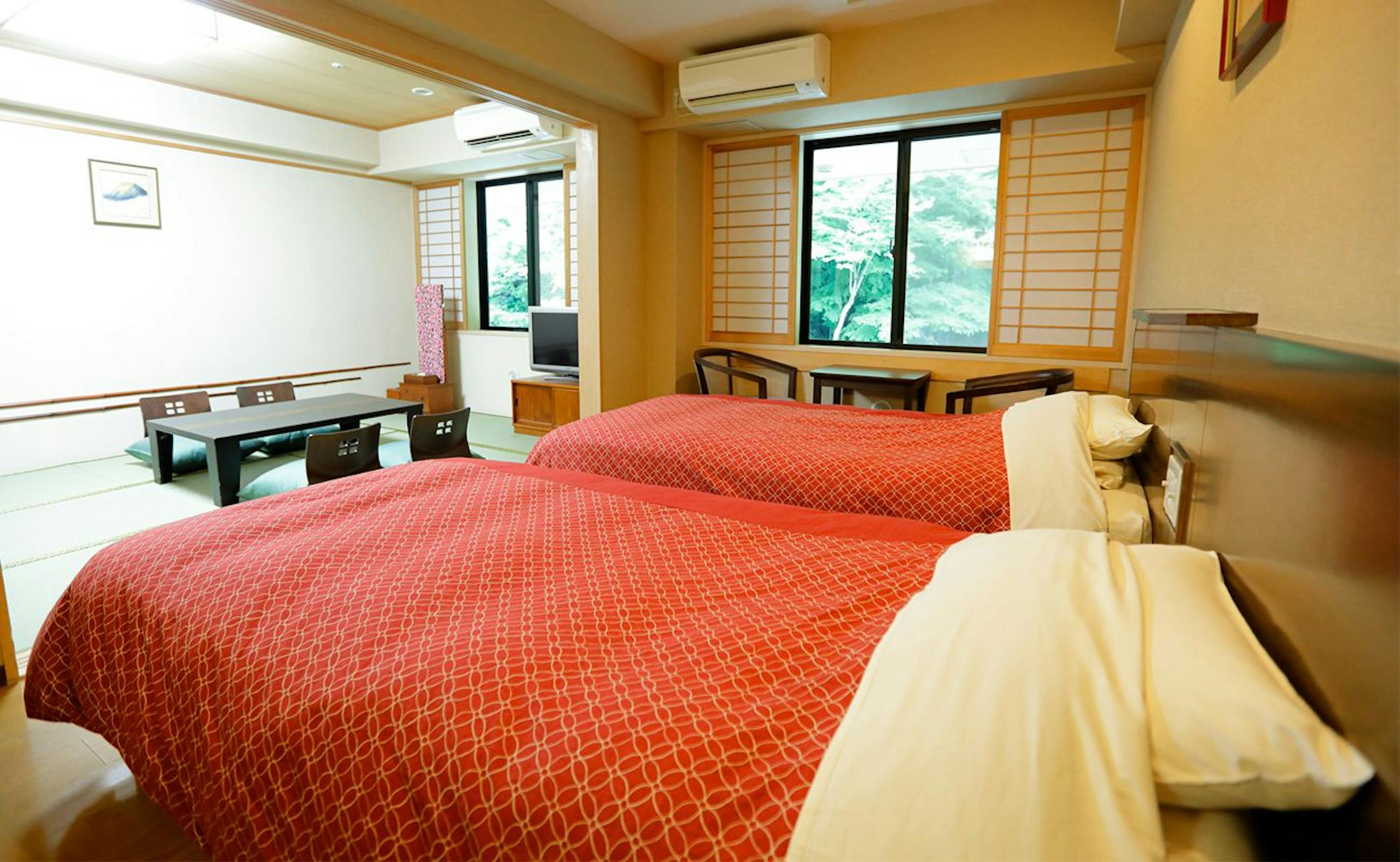 7.5畳和室+ツインベッドルーム(シングル)+トイレ2か所+洗面台2か所+シャワールーム