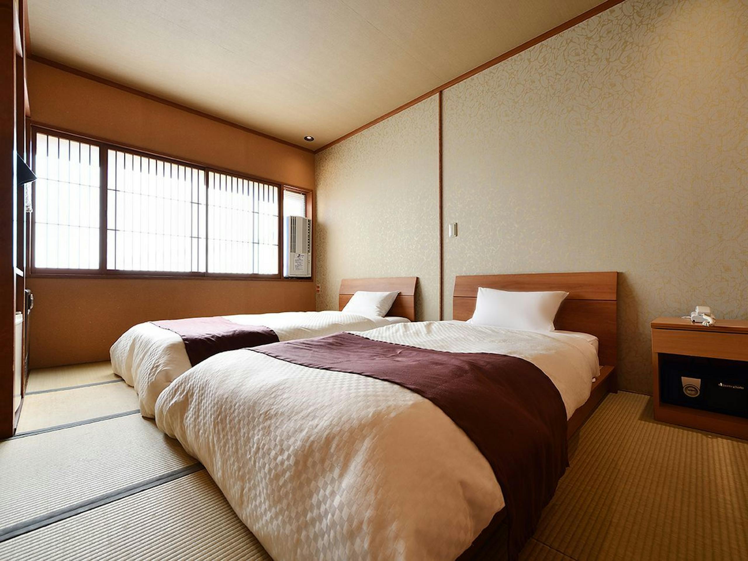 8畳の間にツインベッド(セミダブルベッド)+広縁+洗面所+トイレ
