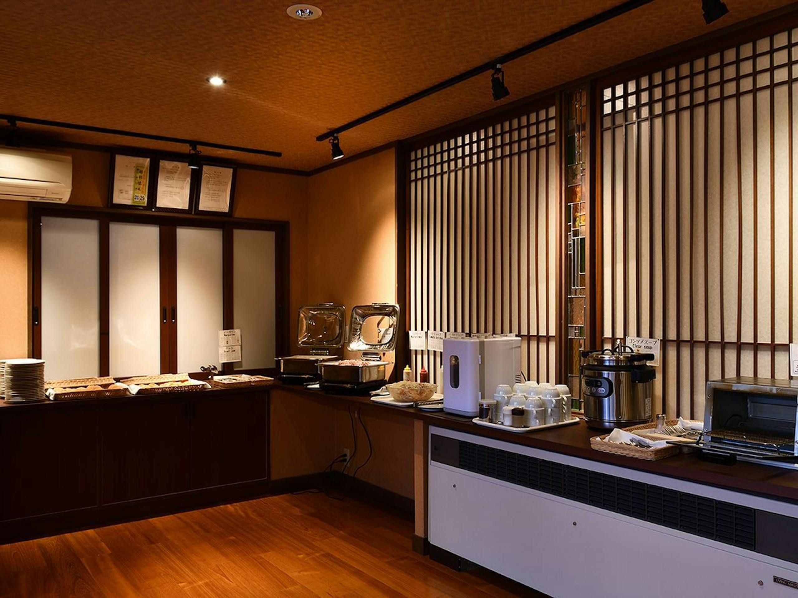 佳乃やでは朝食時間にラウンジで午前7時から午前9時の間にバイキング形式で無料の軽食がサービスされています。
