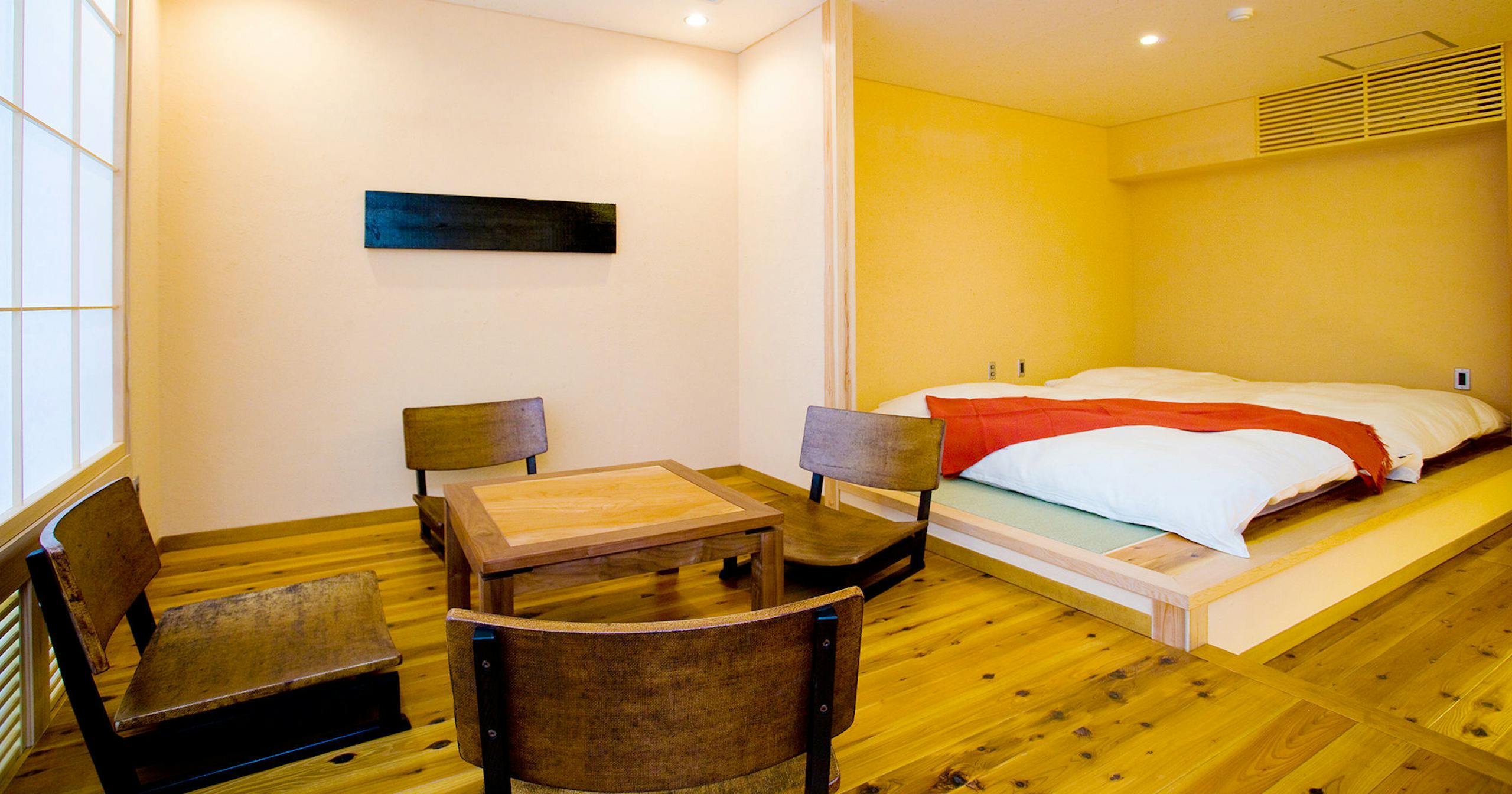 木の温もりと、珪藻土壁の落ち着きあるこだわりのお部屋は、すべて異なる造りとなっております