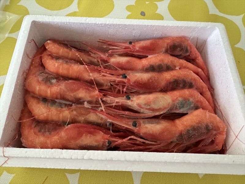 ガサ海老、甘えびは-60℃で獲れたらすぐに船上冷凍されているのでお勧めだと言われました。