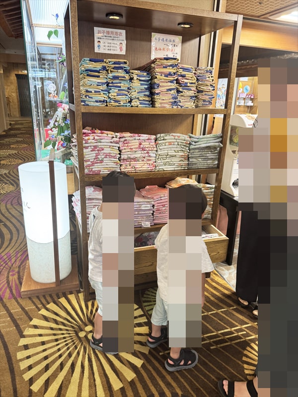 浴衣は女性と子供が1階で柄やサイズを選んで部屋に持って行きます。