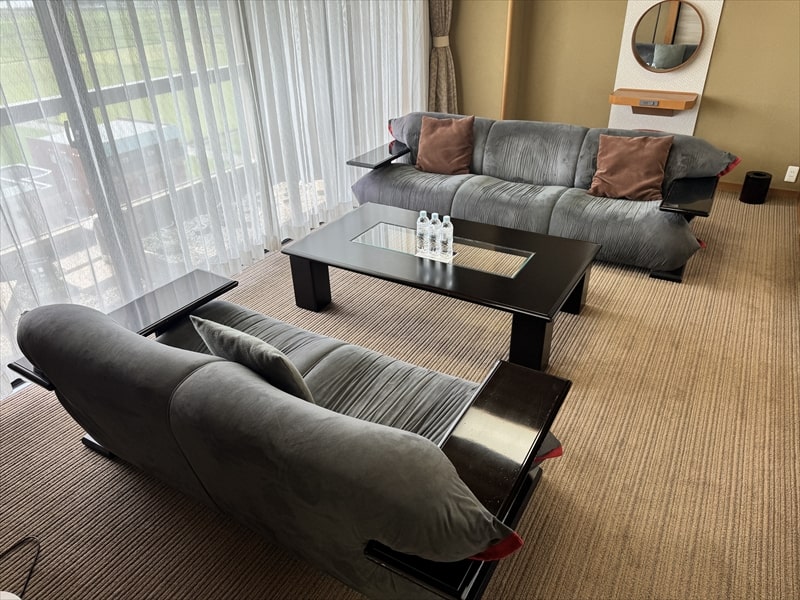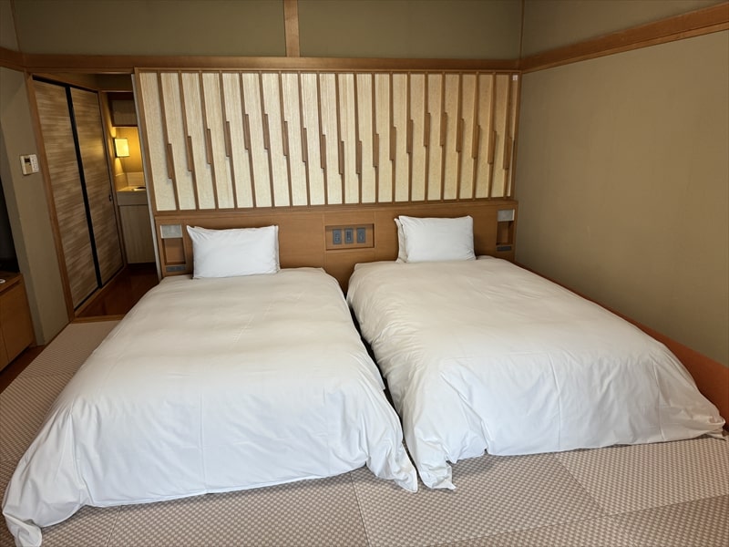 特別室は和室15畳にセミダブルベッドのツインベッドルーム、リビングルームが付いた部屋でした。
