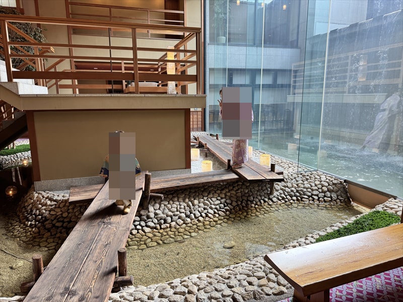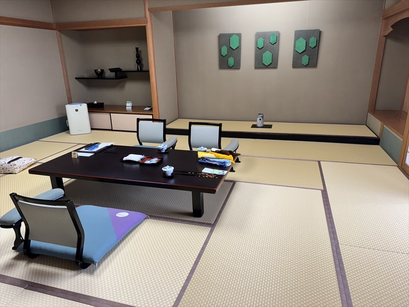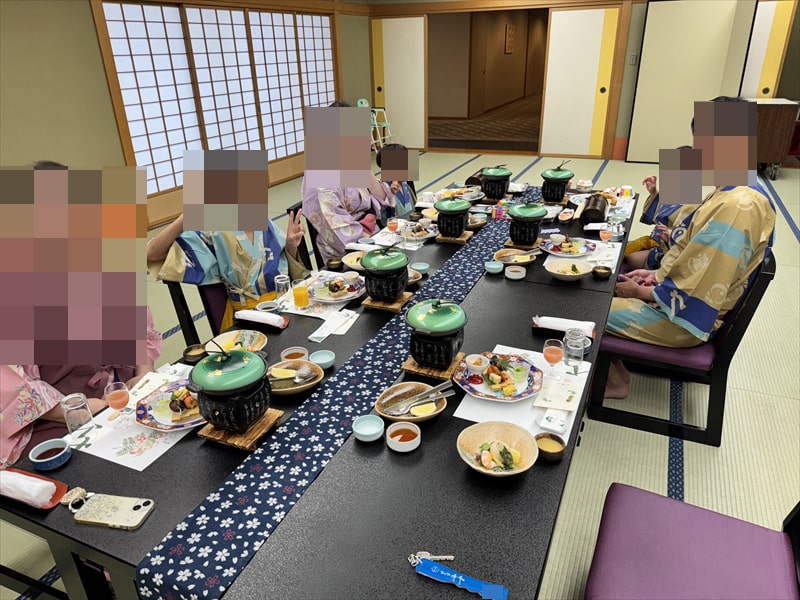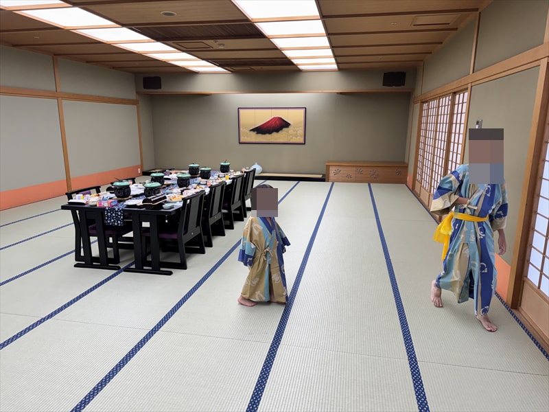今回の宿泊は子連れ2家族の7名での宿泊でしたので、食事の場所はせんせん館の2階の中宴会場の「右近」でとなりました。