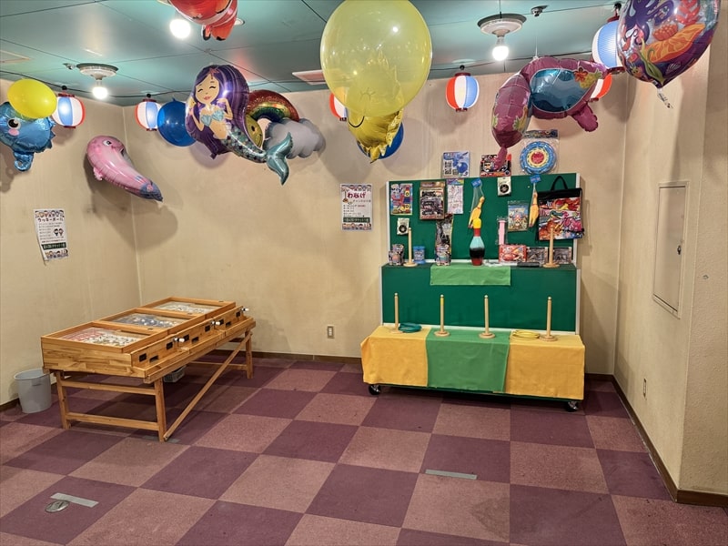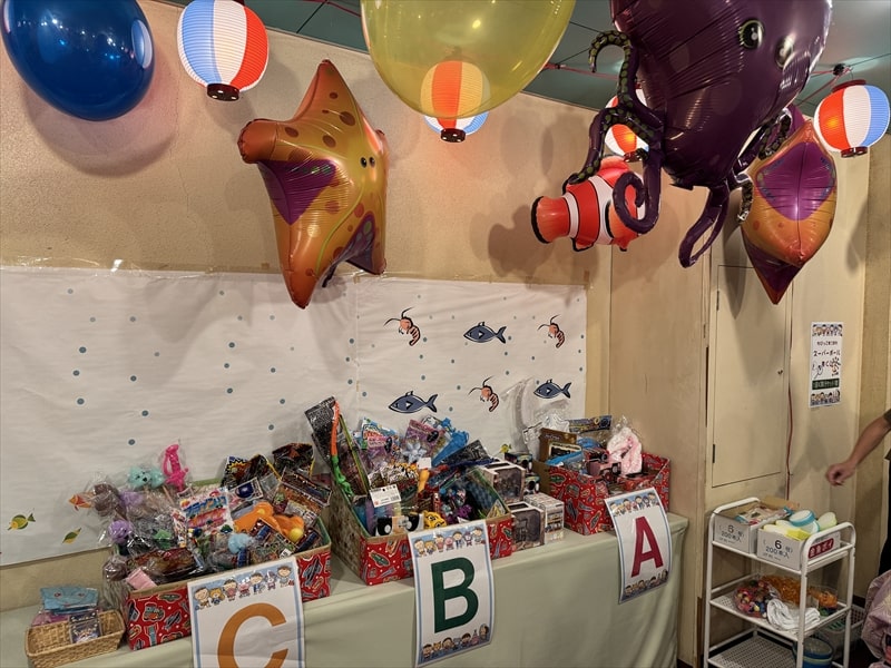 チケットが販売されていて、スーパーボールすくい、くじびき、輪投げな、スマートボールが行われていて、必ず景品がもらえることから子供は夢中でした。