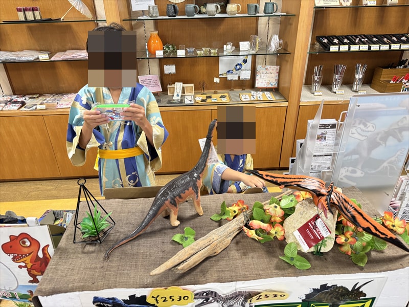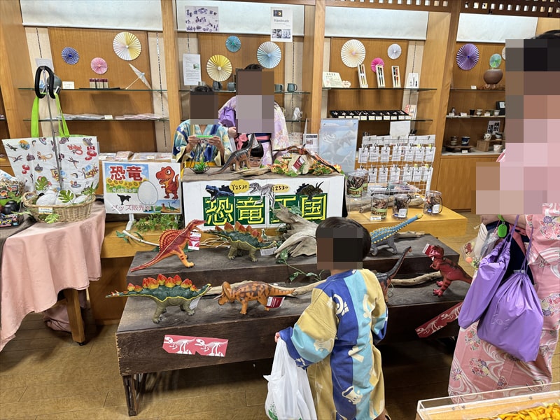 売店の営業は夜が10時まで、朝は7時から営業されていて、恐竜グッズもあるため子供が欲しいモノ探しで楽しんでいました。