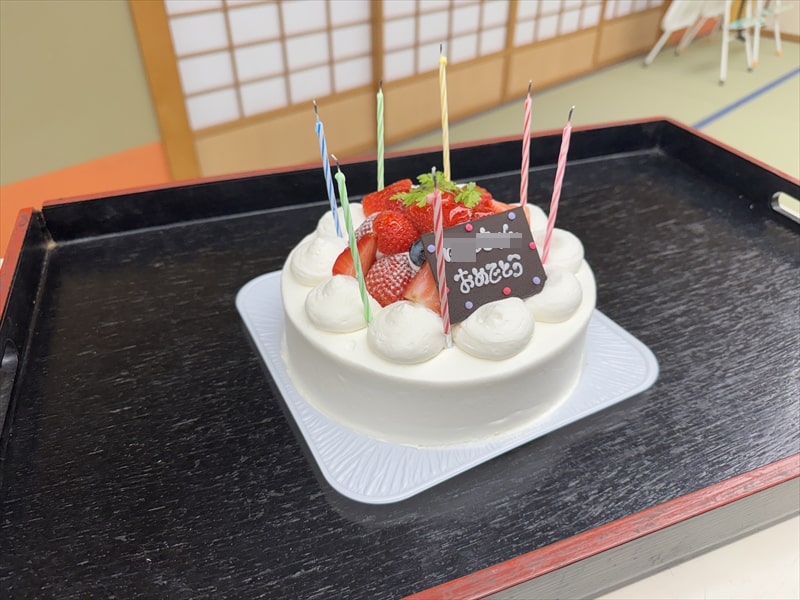 また宿泊当日が誕生日の者がいましたのでバースデーケーキも出してくれる様にお願いしました。