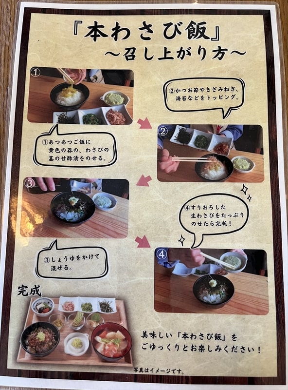 本わさび飯は食べ方が書かれたものがテーブルに置かれていました。