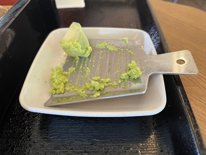 料理が運ばれるまで席で生わさびをおろして待ちます。