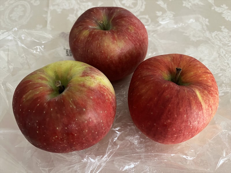 シナノリップという種類で8月中旬から月末までの短い期間しか採れないとのことで、この地区しか流通しないリンゴだと言われました。