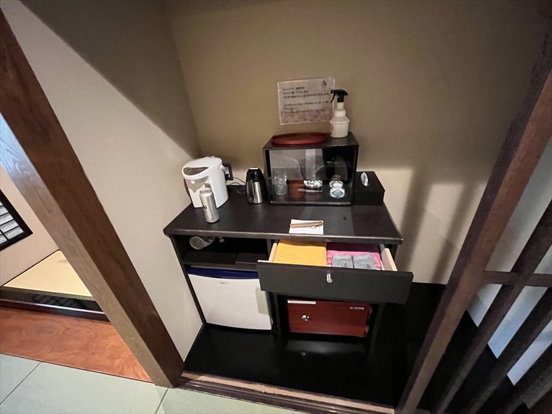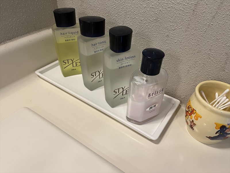 アメニティは湯沸かしポット、お茶セット、冷水ポット、電気スタンド、金庫、石鹸、ボディーソープ、リンスインシャンプー、ハミガキセット、タオル、バスタオル、乳液、化粧水、ヘアリキッド、ヘアトニック、アフターシェーブローション、かみそりなどとなっています。
