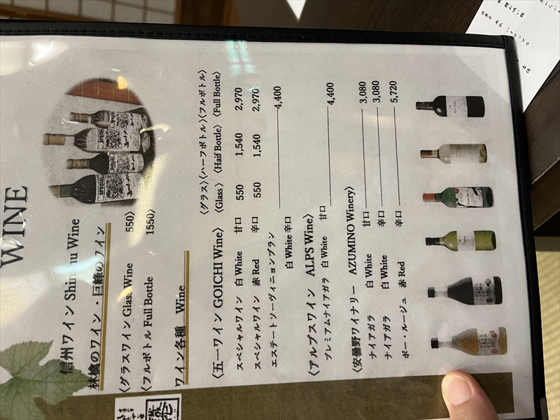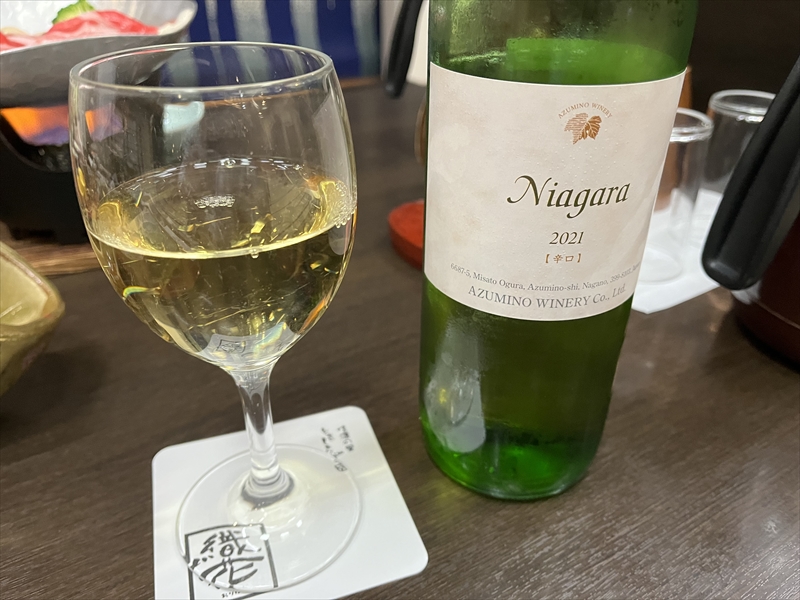 食事の際にワインを選びましたが、せっかくですから地元の安曇野ワイナリーのナイアガラ辛口を頂きました。