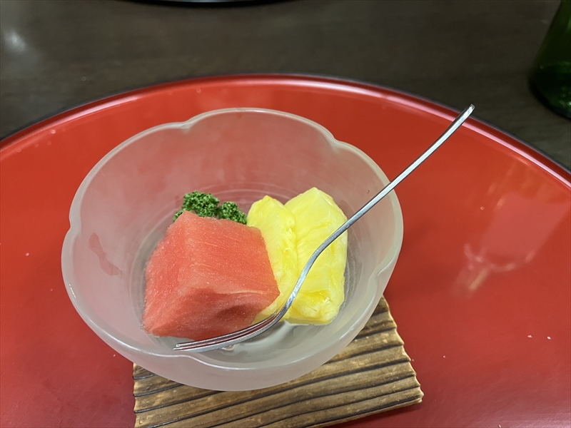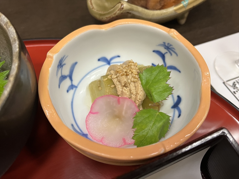 前菜 玉玉蜀黍豆腐 ずいきの炒め物 穴子と胡瓜の土佐酢ジュレ掛け