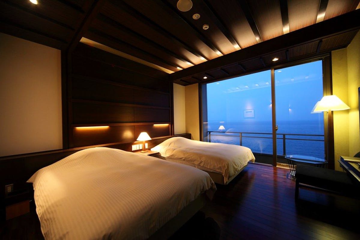 特徴:洋室ツイン + テラス + 専用露天風呂付き