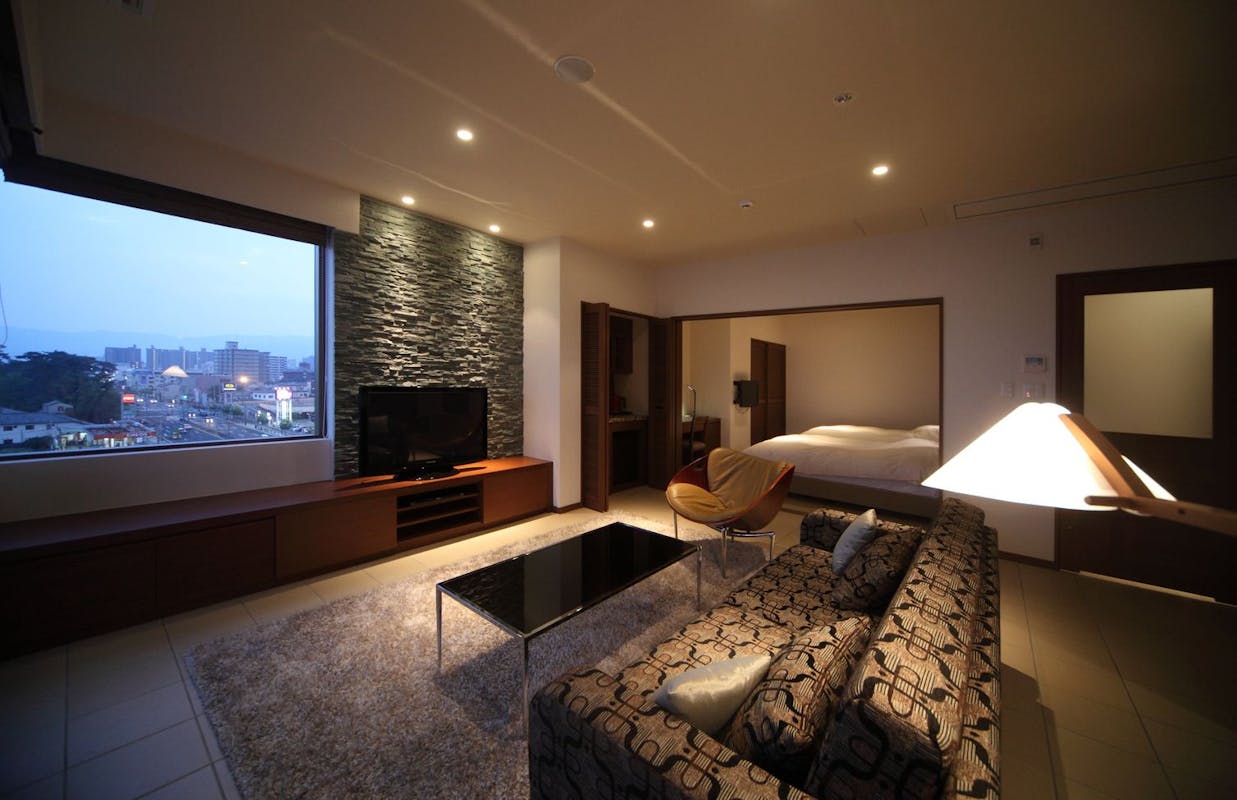 テレビ、電話、湯沸かしポット、お茶セット、冷蔵庫、ドライヤー、ズボンプレッサー(貸出)、電気スタンド、電気スタンド(一部)、アイロン(貸出)、加湿器、個別空調、洗浄機付トイレ、ボディーソープ、シャンプー、リンス、ハミガキセット、カミソリ、くし、ブラシ、タオル、バスタオル、バスローブ、浴衣、くつろぎ着の作務衣、スリッパ、金庫