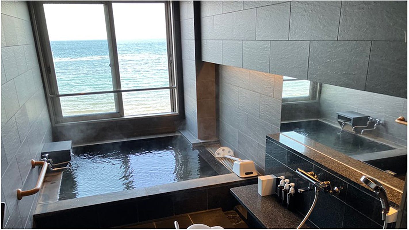 ・海を見ながら露天風呂&テラスを楽しめる広めの空間