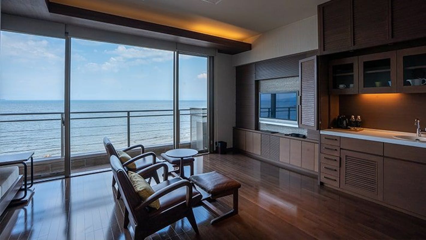 ・全室がオーシャンビューで源泉かけ流しの露天または半露天風呂付き