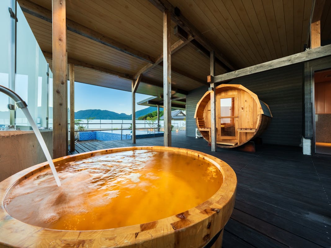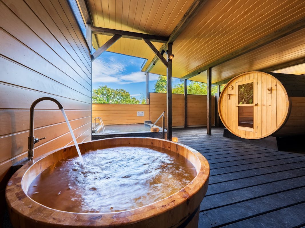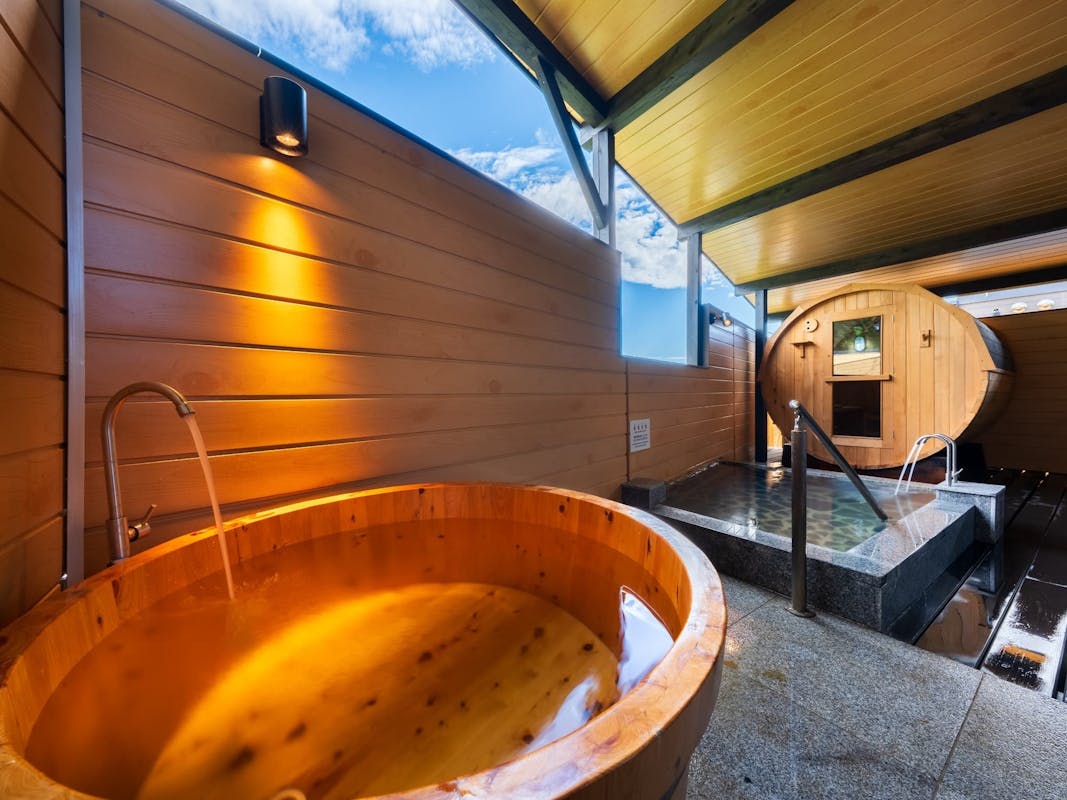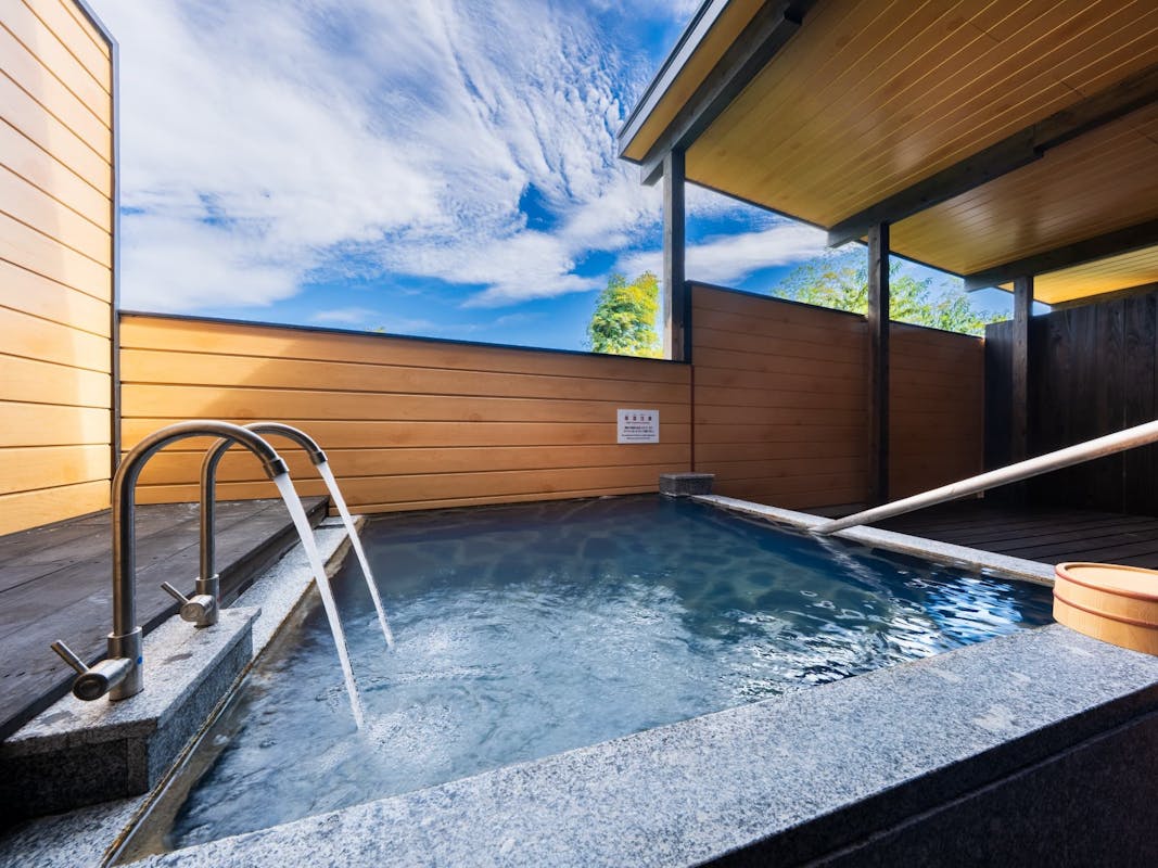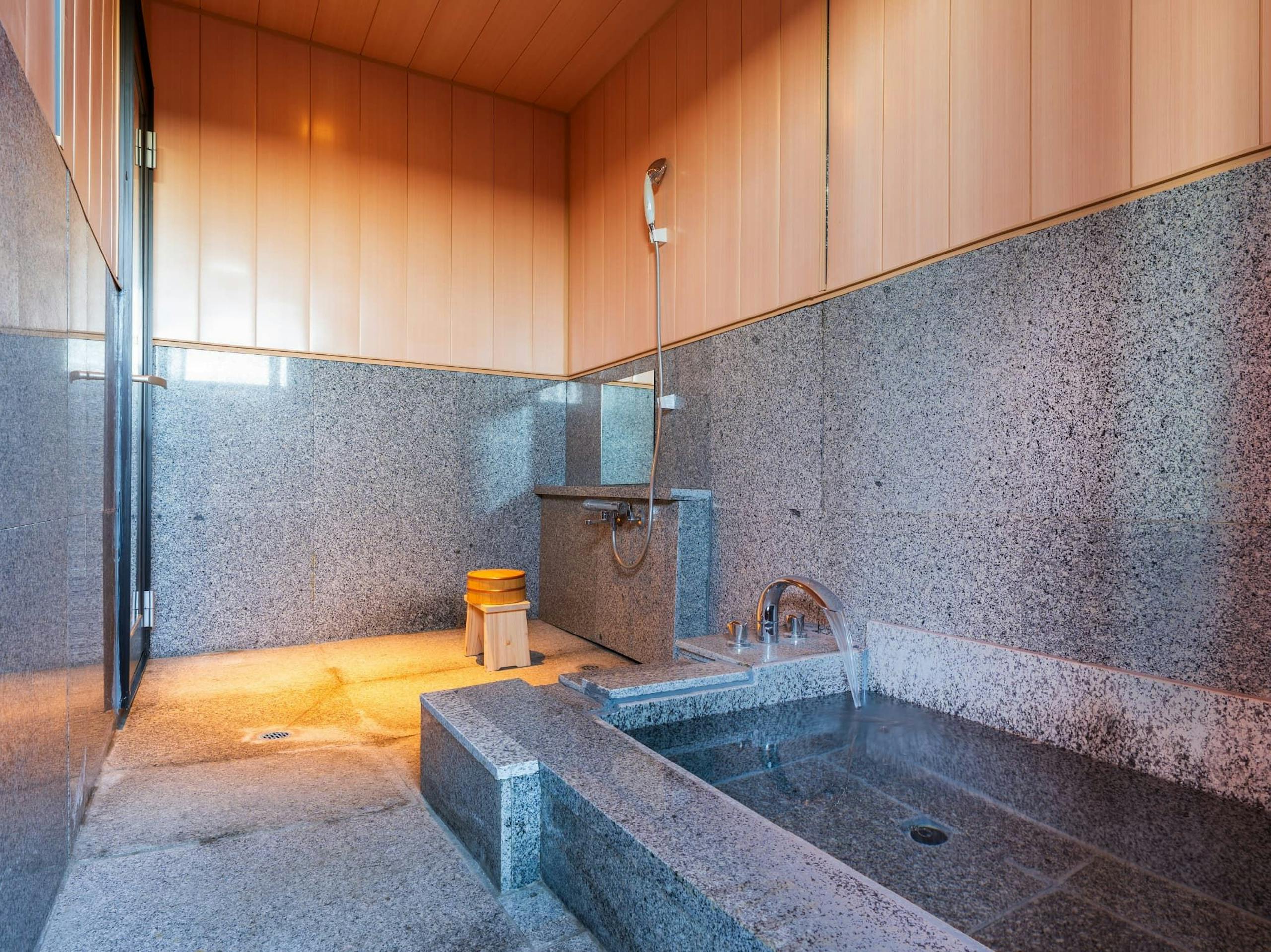 源泉掛け流し半露天風呂+シャワーブース+パウダーブース