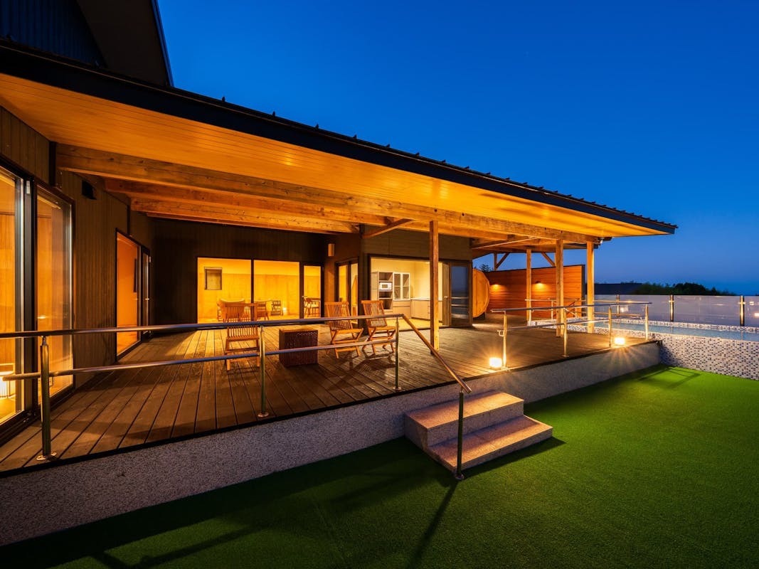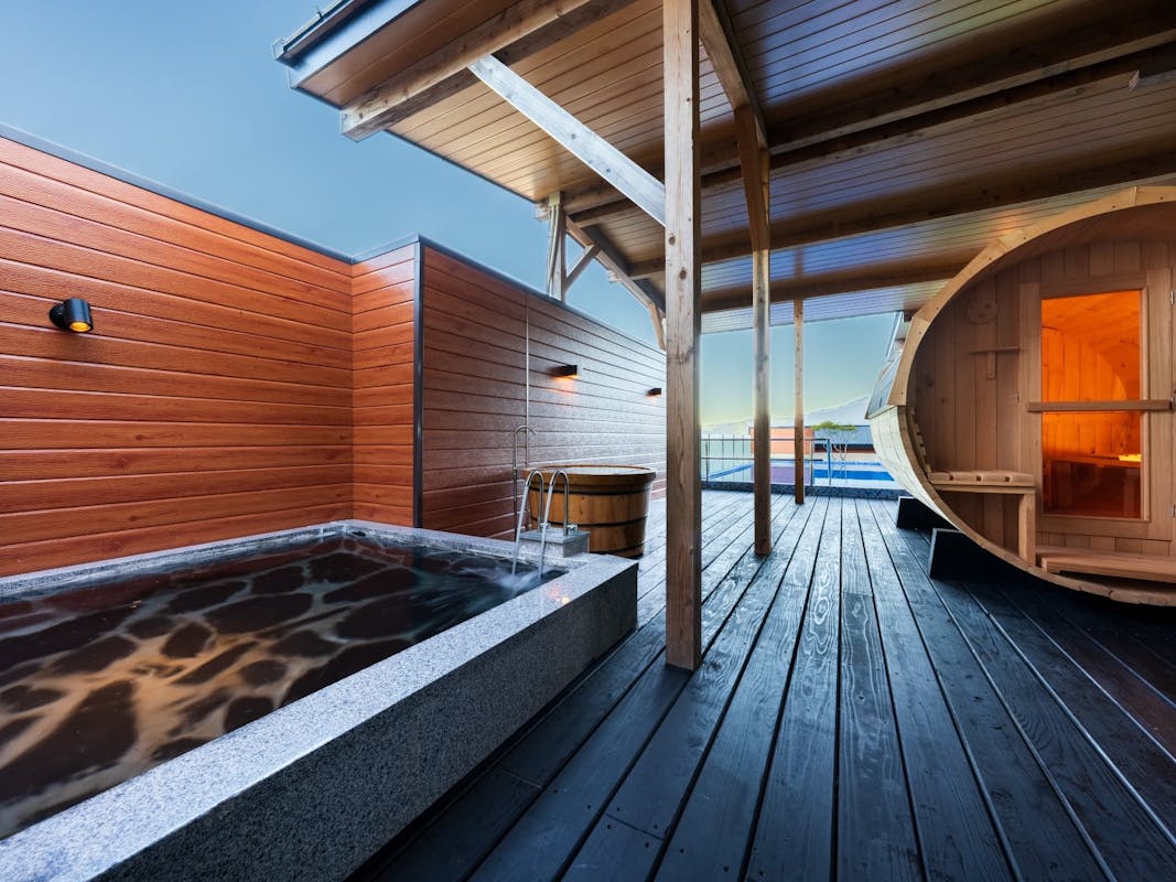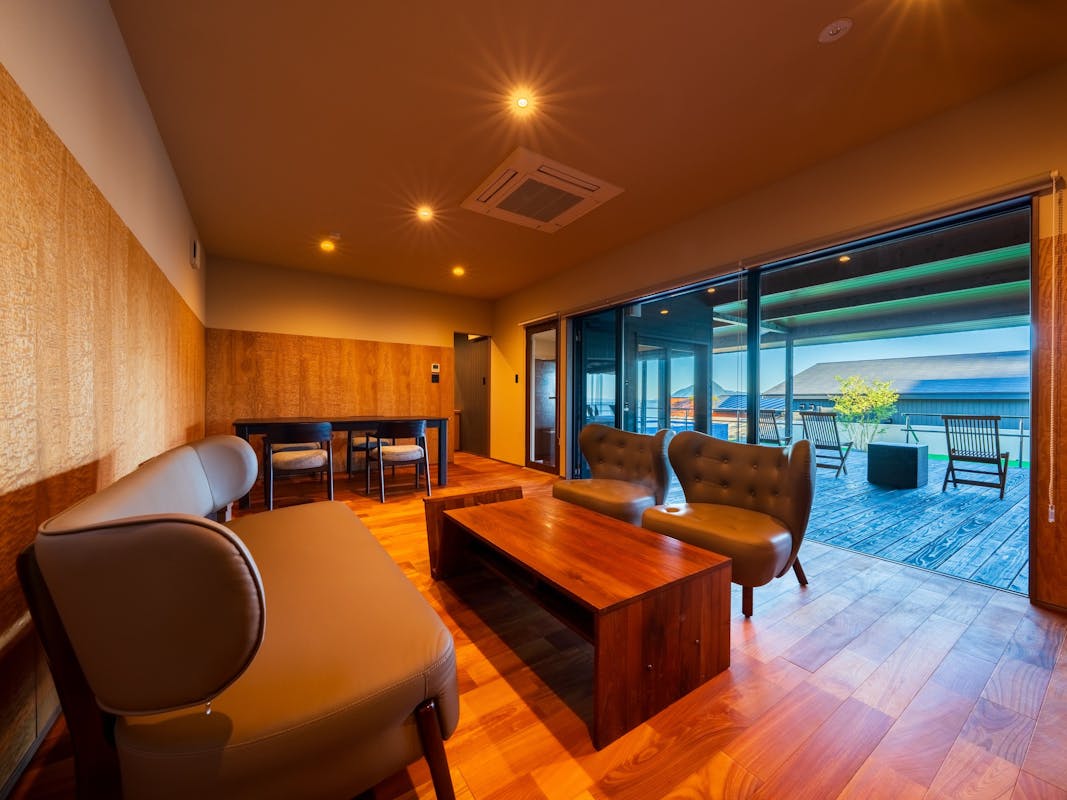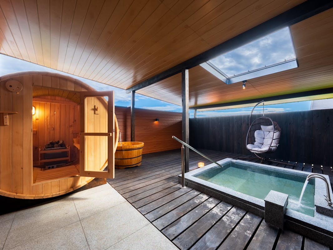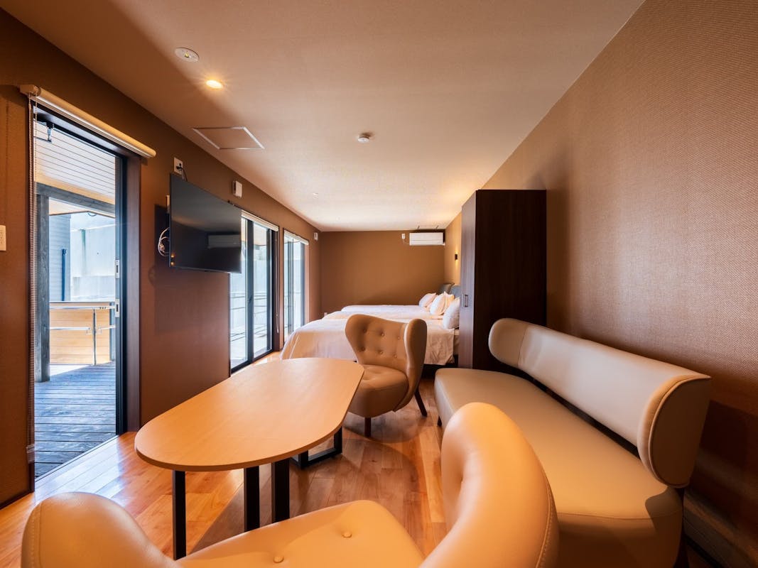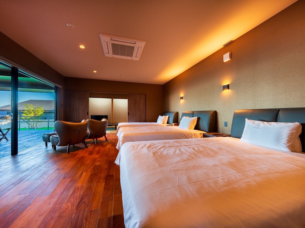 洋リビング+洋ベッドルーム+源泉掛け流し半露天風呂+シャワーブース+パウダーブース
