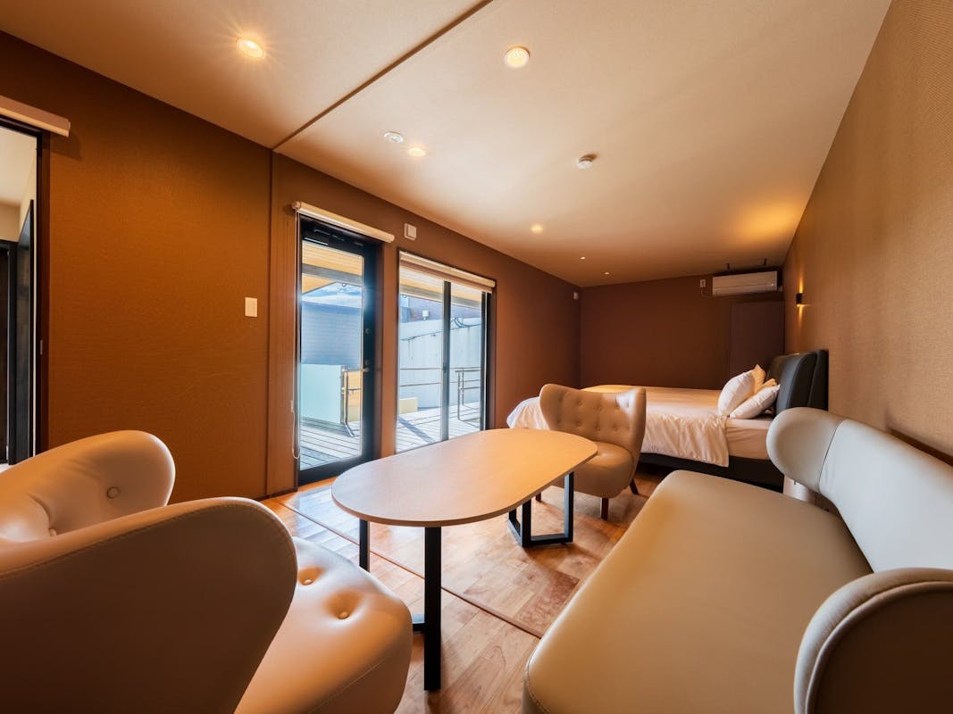 リビング+寝室+源泉掛け流し半露天風呂+シャワーブース+パウダーブース