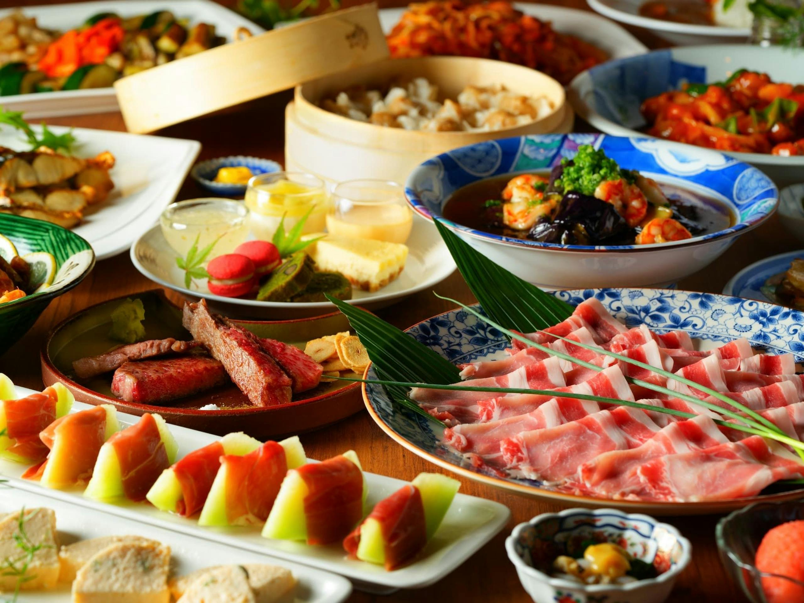 会席料理と鉄板焼きのコースがあり、会席料理は部屋食または食事処となります。