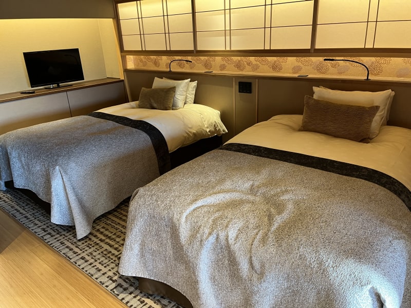 Some ryokans have Western-style rooms for those who do not like to sleep on futons, such as a Japanese-style room with a bed, a Japanese-style room with a bed, or a twin-bed room.