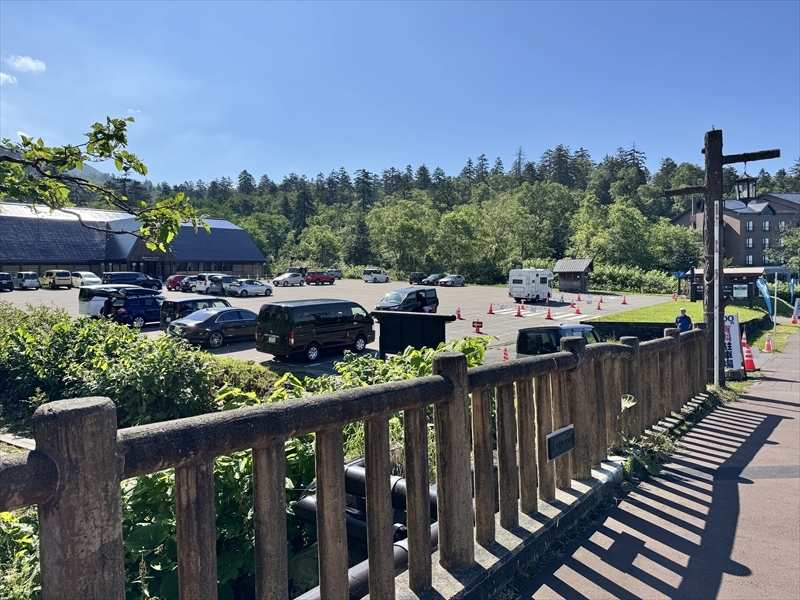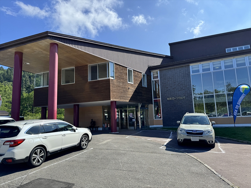 旭岳ロープウエイの駐車場に着きますとすでに満車に近い状態で建物の裏の方がまだ少し空いているとのことでしたが、私が乗っていた車のサイズが少し大きいことからすぐ下のビジターセンター前の駐車場の方に停めておいた方が良いと言われそちらに移動して駐車しました。