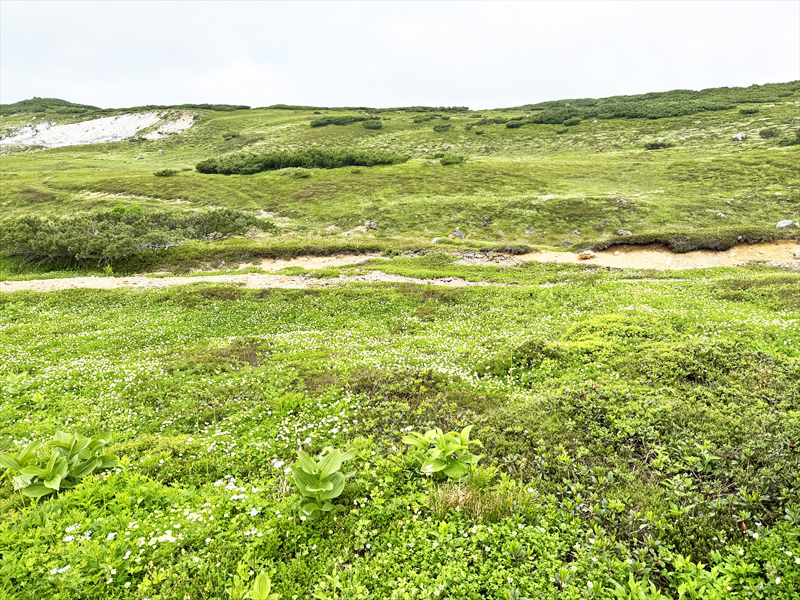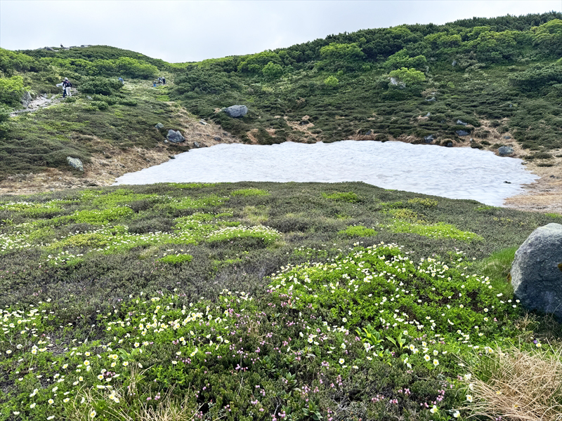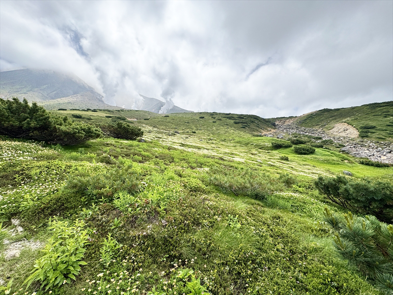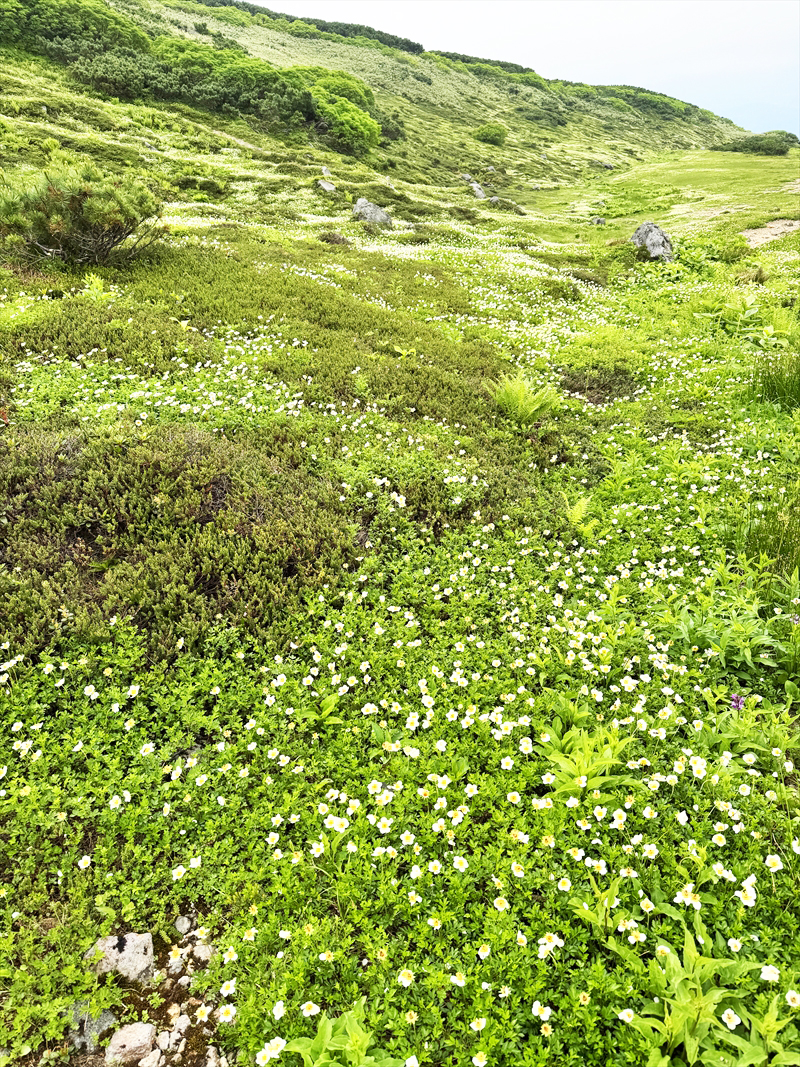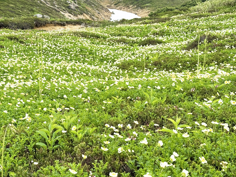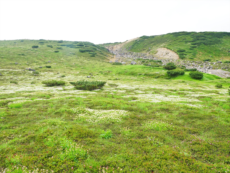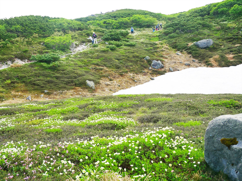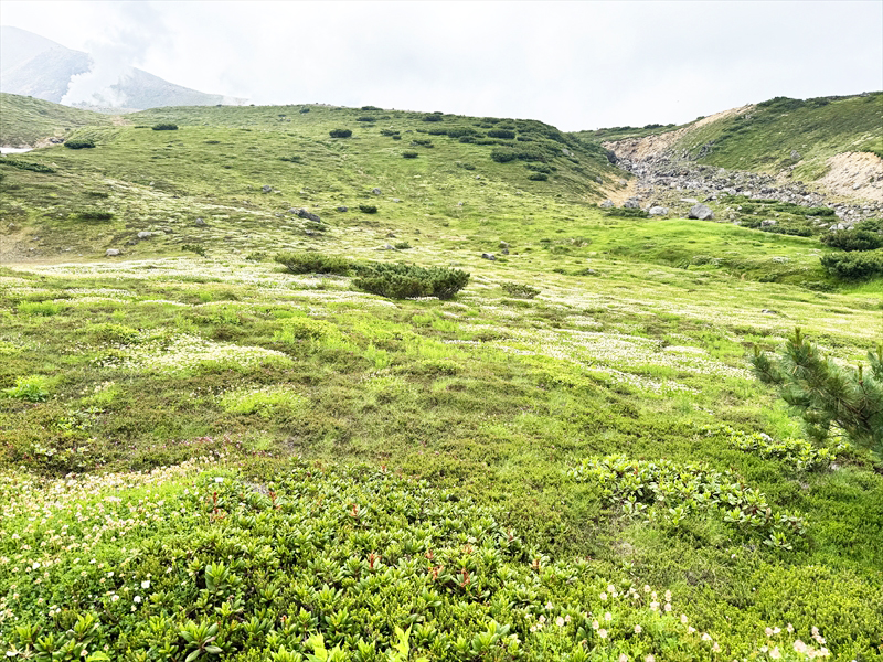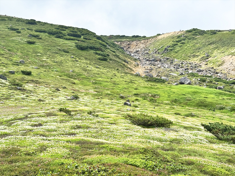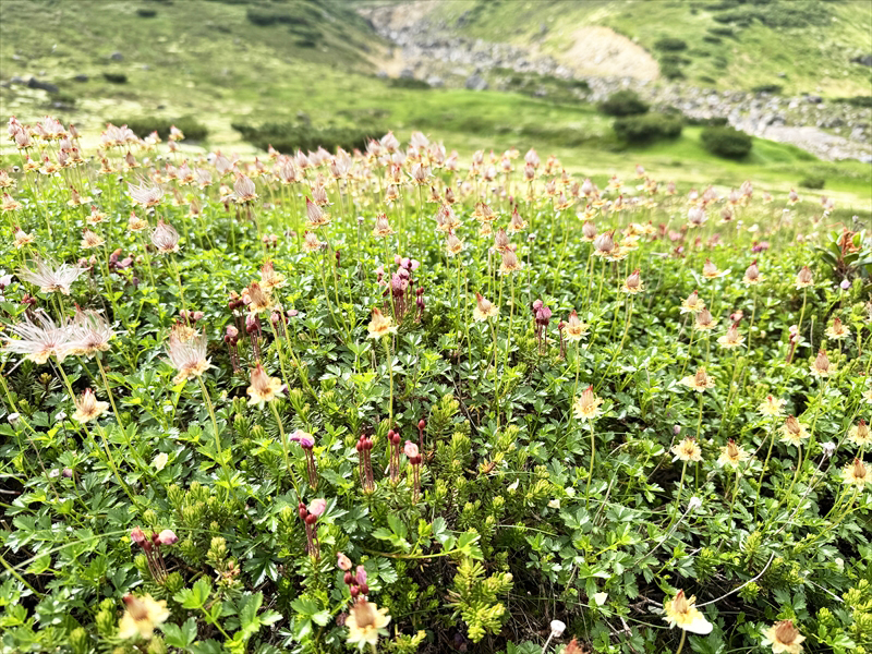 15分ほど行ったところに斜面の一面にチングルマが咲いている場所がありますので楽しませてもらいました。