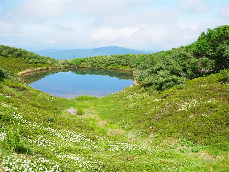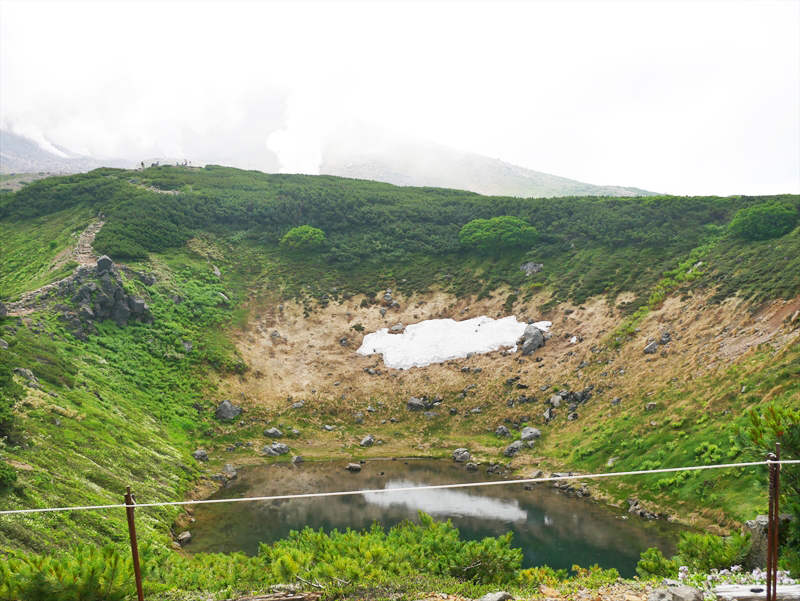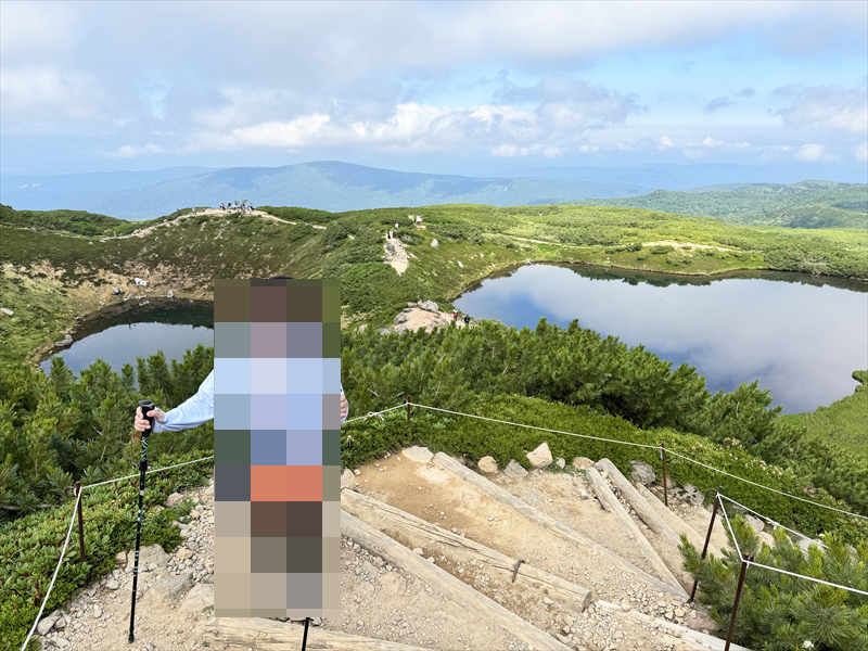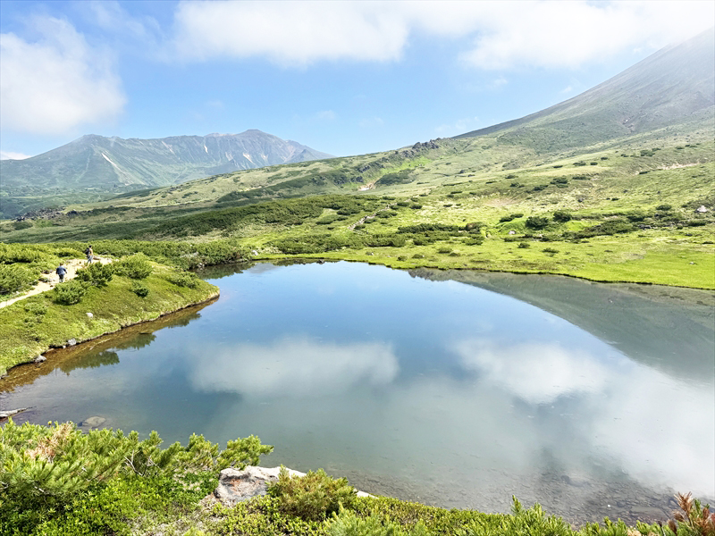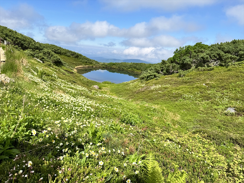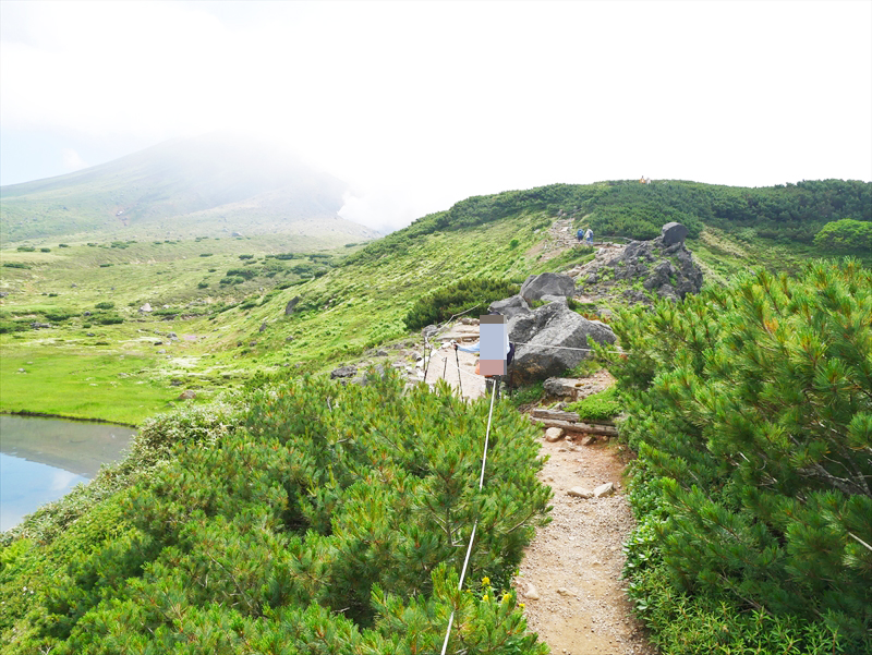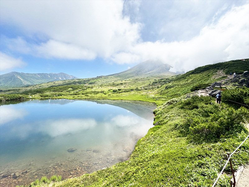 チングルマの群生を楽しんだ後は来た道を戻り、鏡池とすり鉢池の所から第四展望台に向かいます。