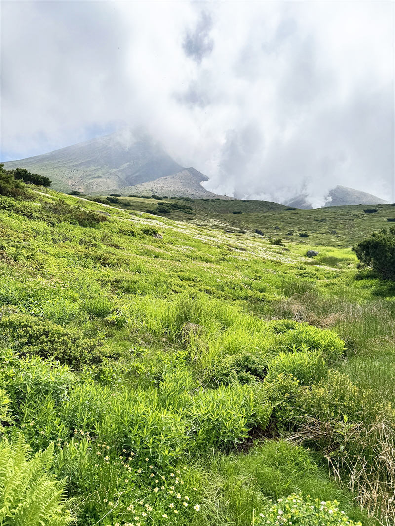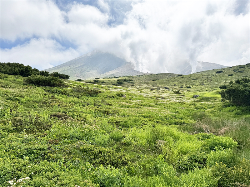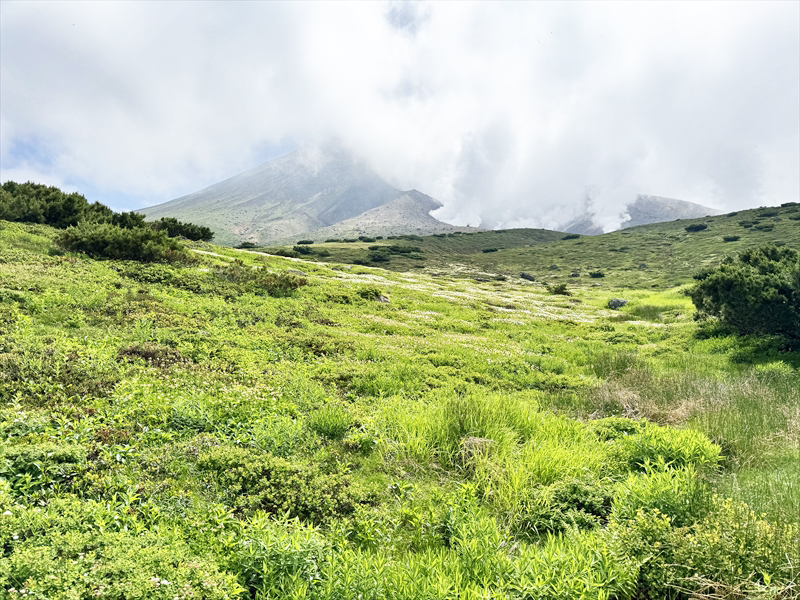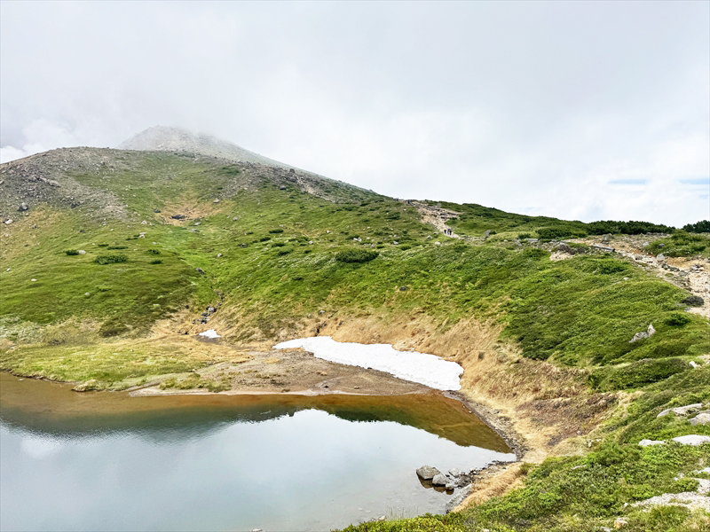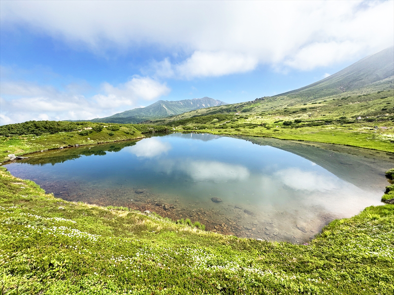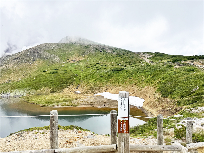 チングルマの群生を楽しんだ後は来た道を戻り、鏡池とすり鉢池の所から第四展望台に向かいます。