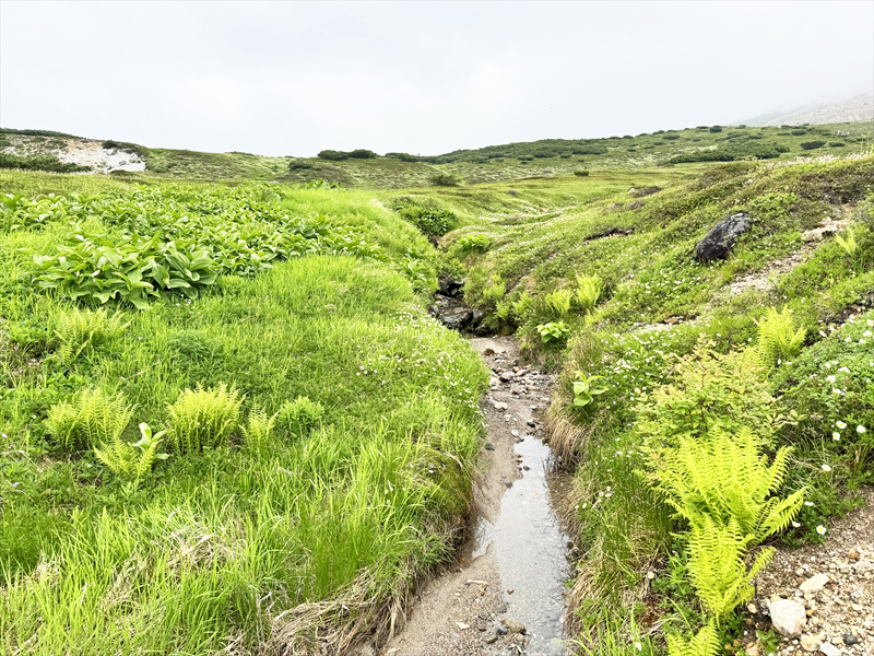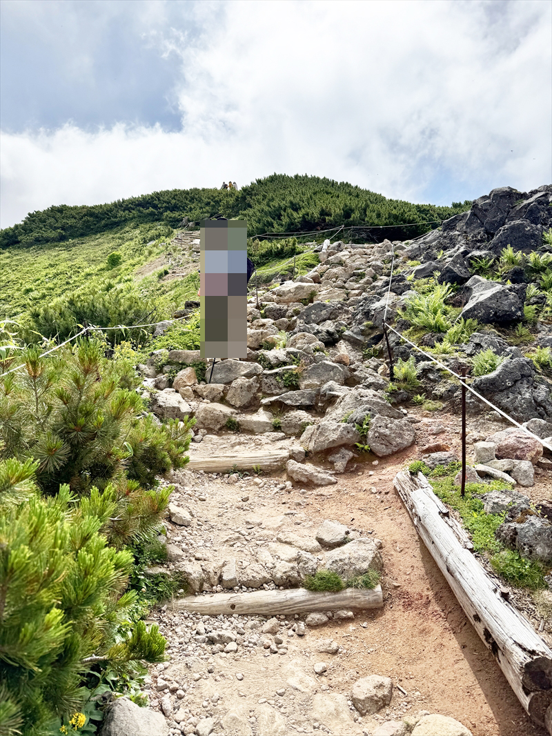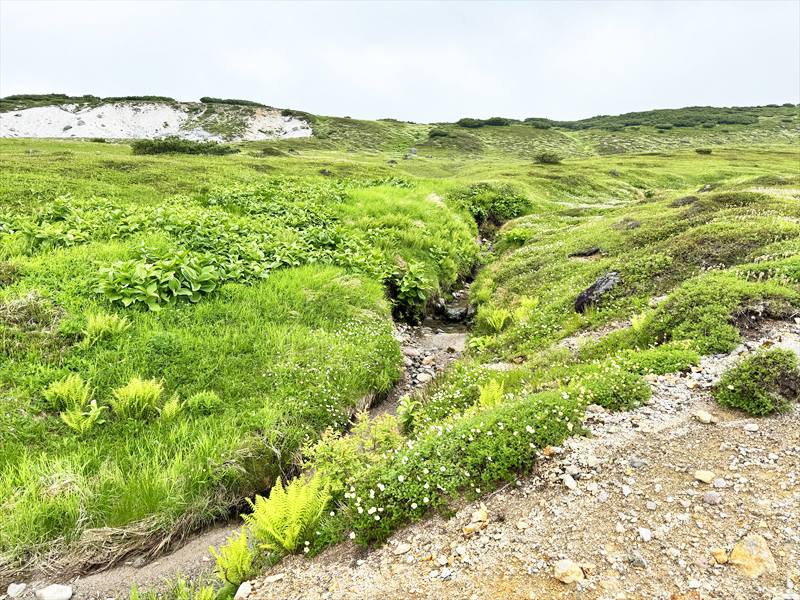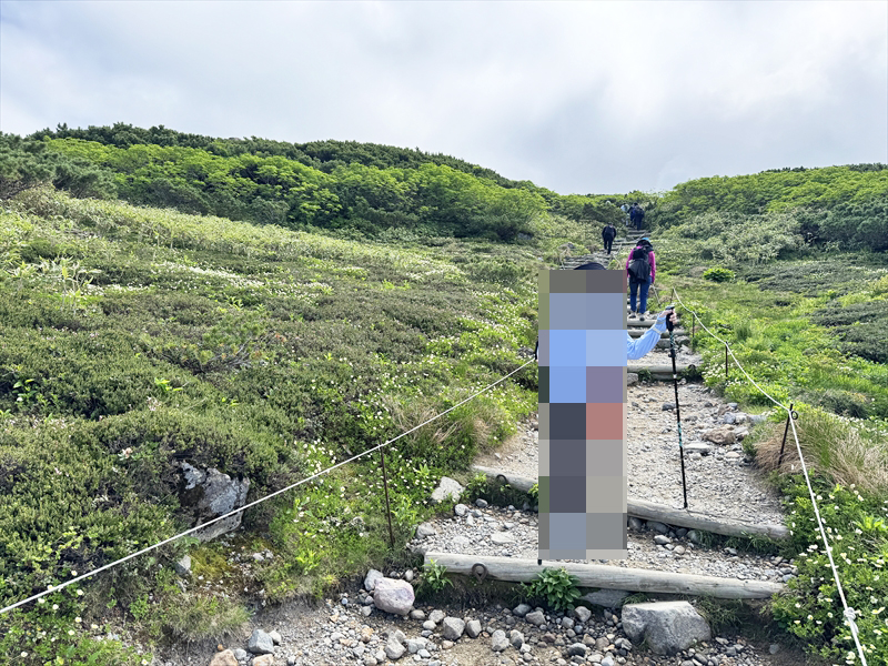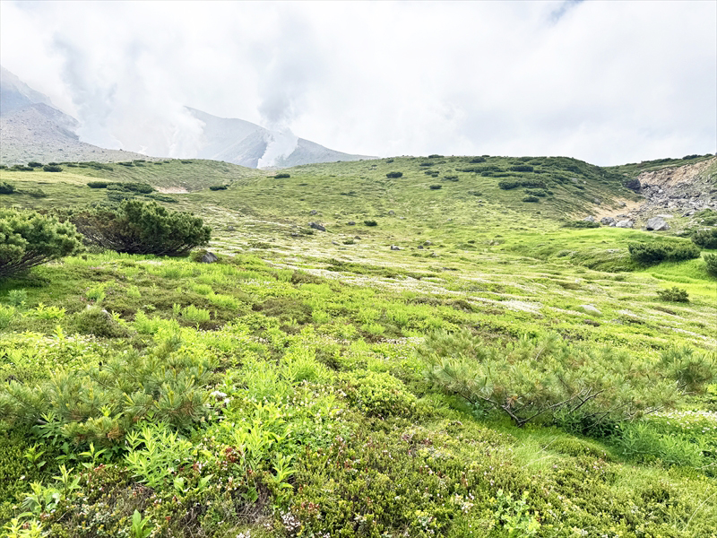 そこから夫婦池を目指しますが、私たちはここで裾合平に向かう登山道に入りチングルマの群生を見に行きました。