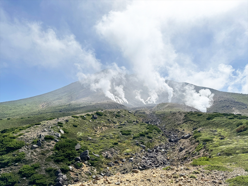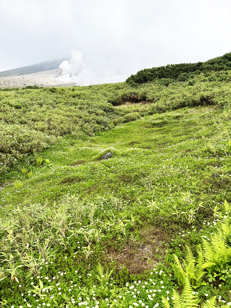 この近辺まで来ますと噴気孔から立ち上る噴煙が良く見えます。