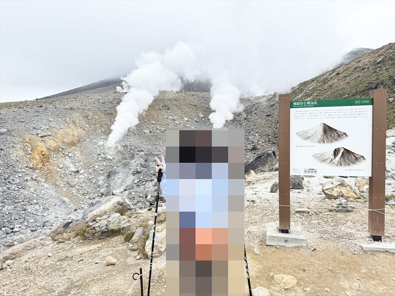 噴気孔の近くまで行きますと噴煙が吹き出す音が聞こえます。