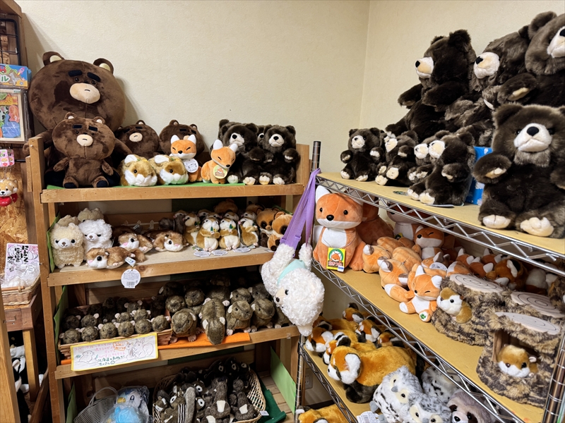 そのため売店を見て回りましたが散策路で会えるかもしれないエゾシマリスやキタキツネ、エゾナキウサギ、エゾユキウサギ、ヒグマのぬいぐるみが販売されていました。