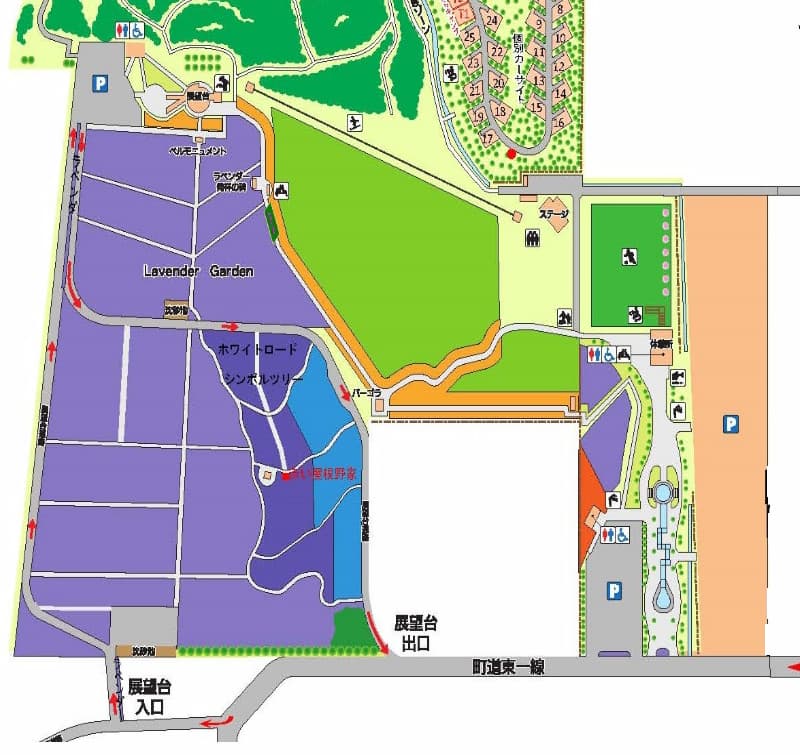 日の出公園ラベンダー園の地図もホームページに表示されています。