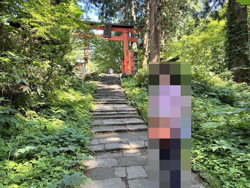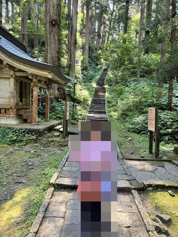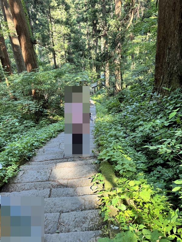 ただし時短のために羽黒山の参道である2446段の石段詣では時間が足りないので行わないで、月山ビジターセンターからすぐ近くの羽黒山有料道路の料金所から車を使って三神合祭殿近くの駐車場まで向かいました。