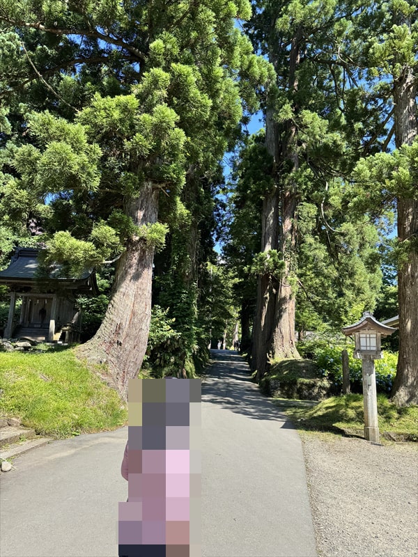 この近辺の参道はとても高い杉並木が続き、神聖な雰囲気が漂っています。