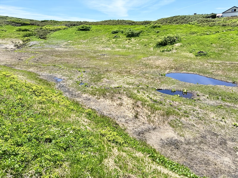 周遊路の最後には残雪が遅くまで残っていたであろうと思われる湿地帯の所には水芭蕉が咲いていました。
