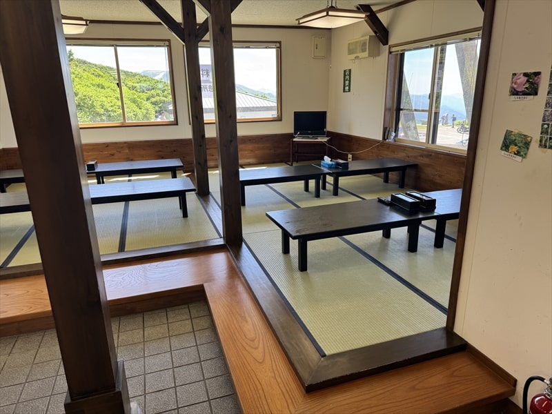 レストハウスの食堂の営業時間は午前8時から午後2時30分でラストオーダーは2時15分となっていました。