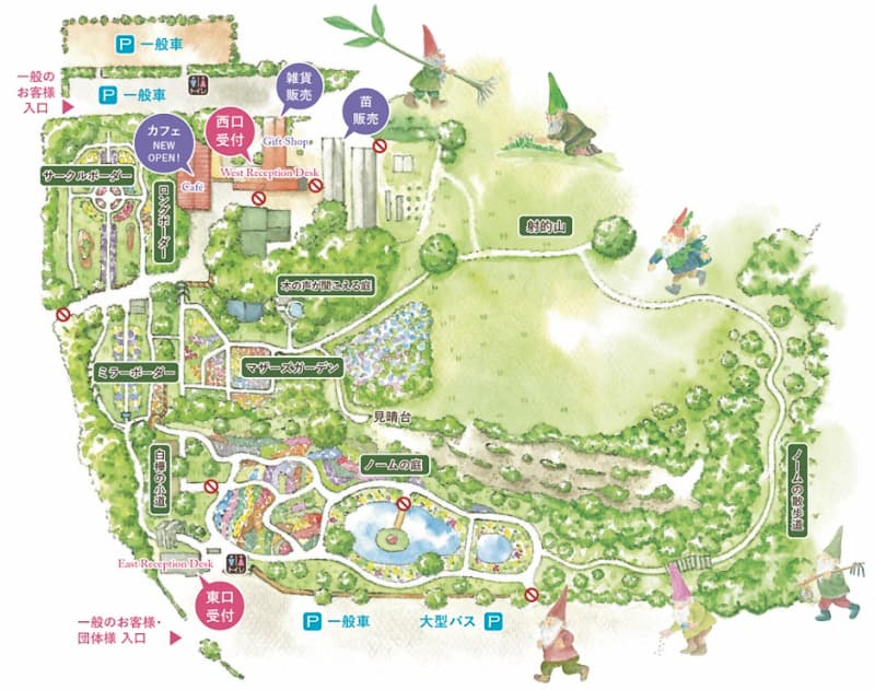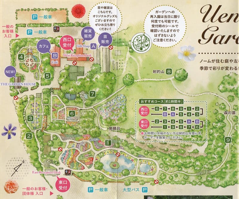 上野ファームの東口から入った園内の観光順路は入場チケットを購入した時にもらえる園内図に書かれていますので、その通りに我が家は周りました。