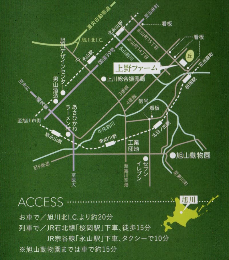 高速道路のインターチェンジは旭川北を利用しましたが、旭川北から上野ファームまでの距離は12キロメートルほどですから、20分ほどで到着しました。