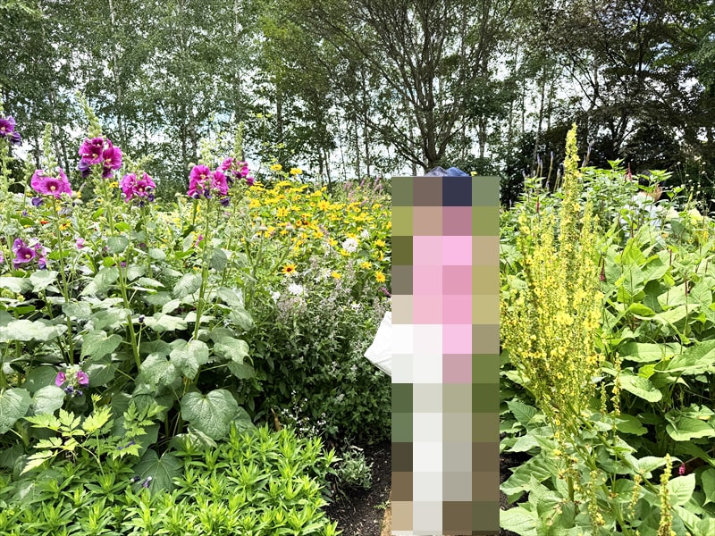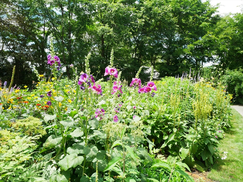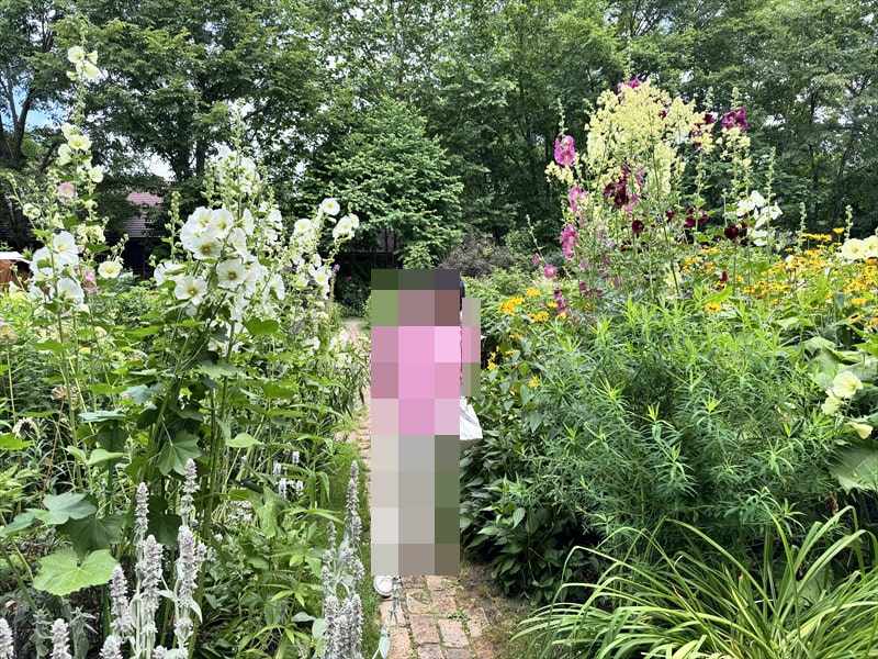 入ってすぐ左側にある白樺の小道を通ってミラーボーダー、サークルボーダー、ロングボーダー、マザーズガーデンの順に周りました。