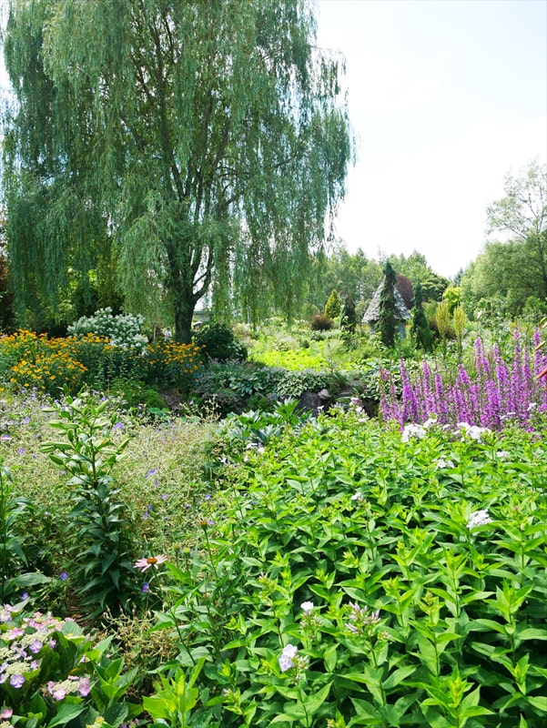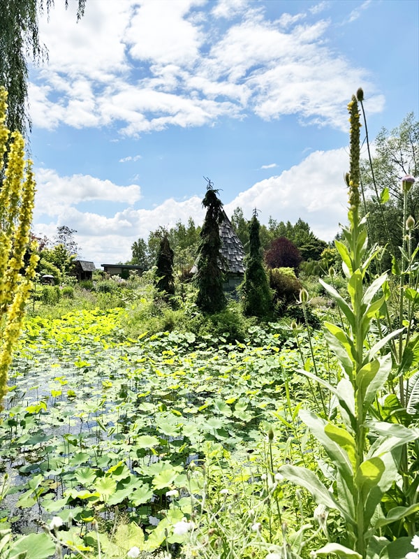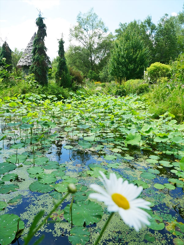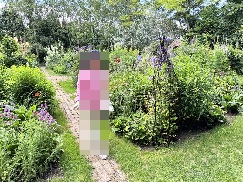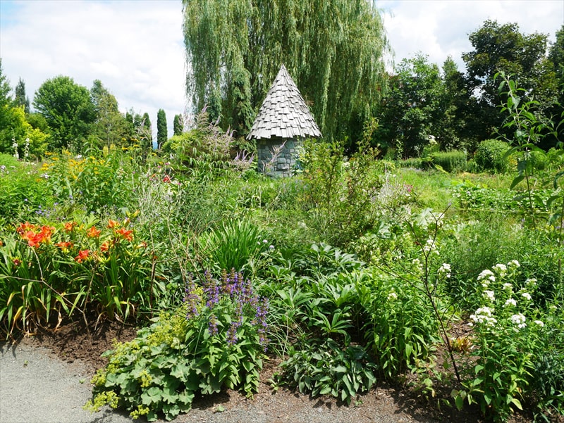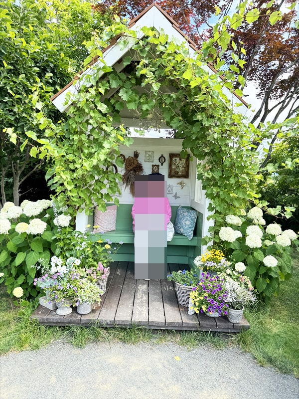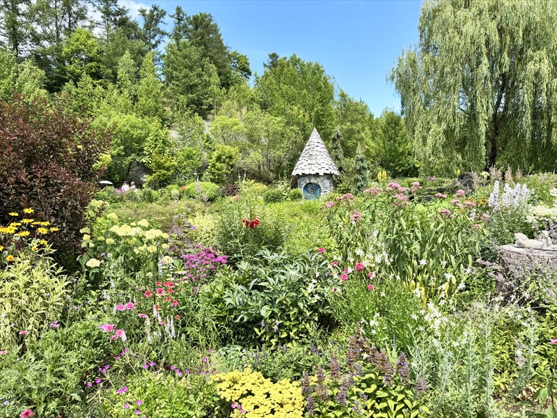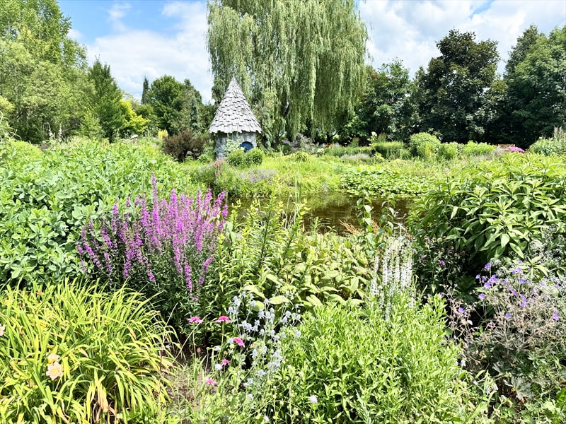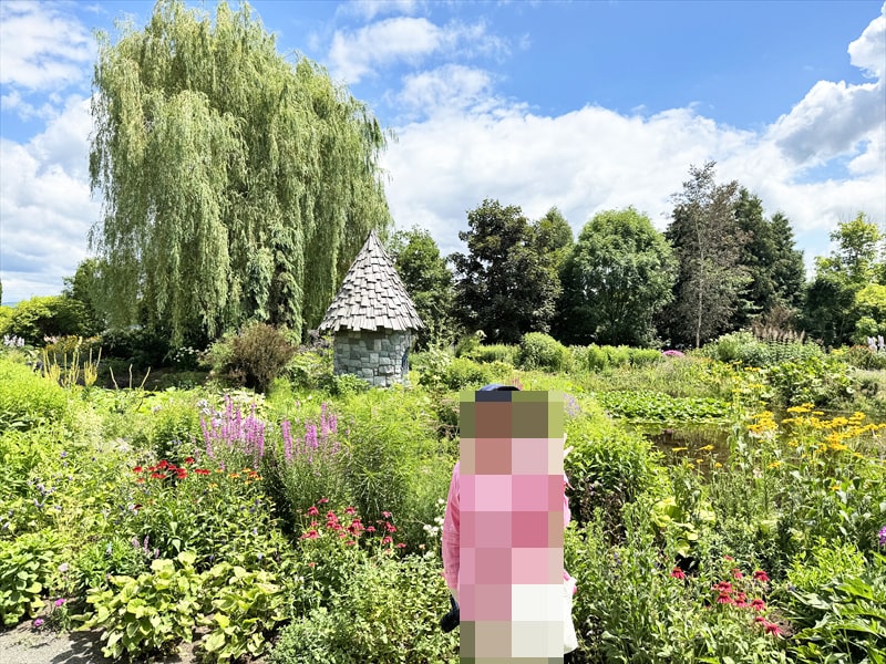その後ノームの庭を周るのですが、こちらはファームの紹介写真にも使われている場所で、小屋と池を含む花の景色がとても絵になります。