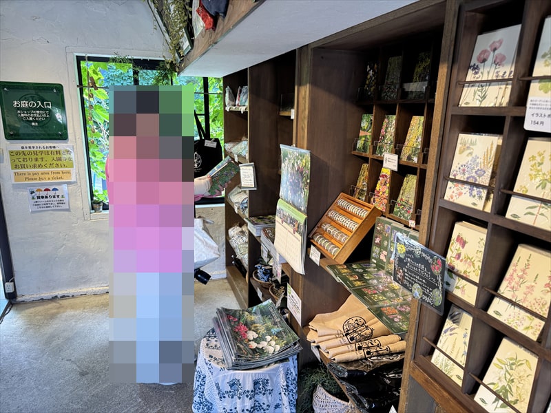 西口にはとてもかわいい花関連のグッズが販売されていて、花柄のハガキやポッシェットを購入しました。