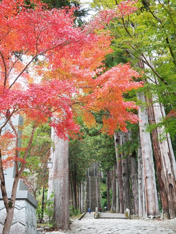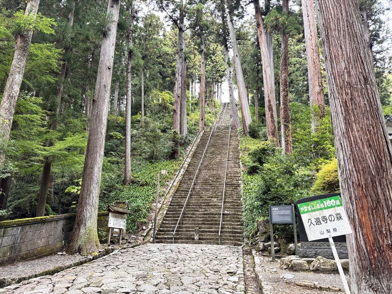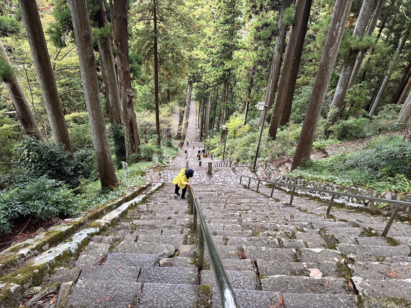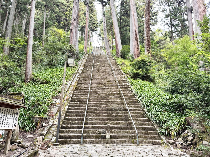 三門をくぐりますと目の前にそそり立つ急坂が287段の菩提梯です。